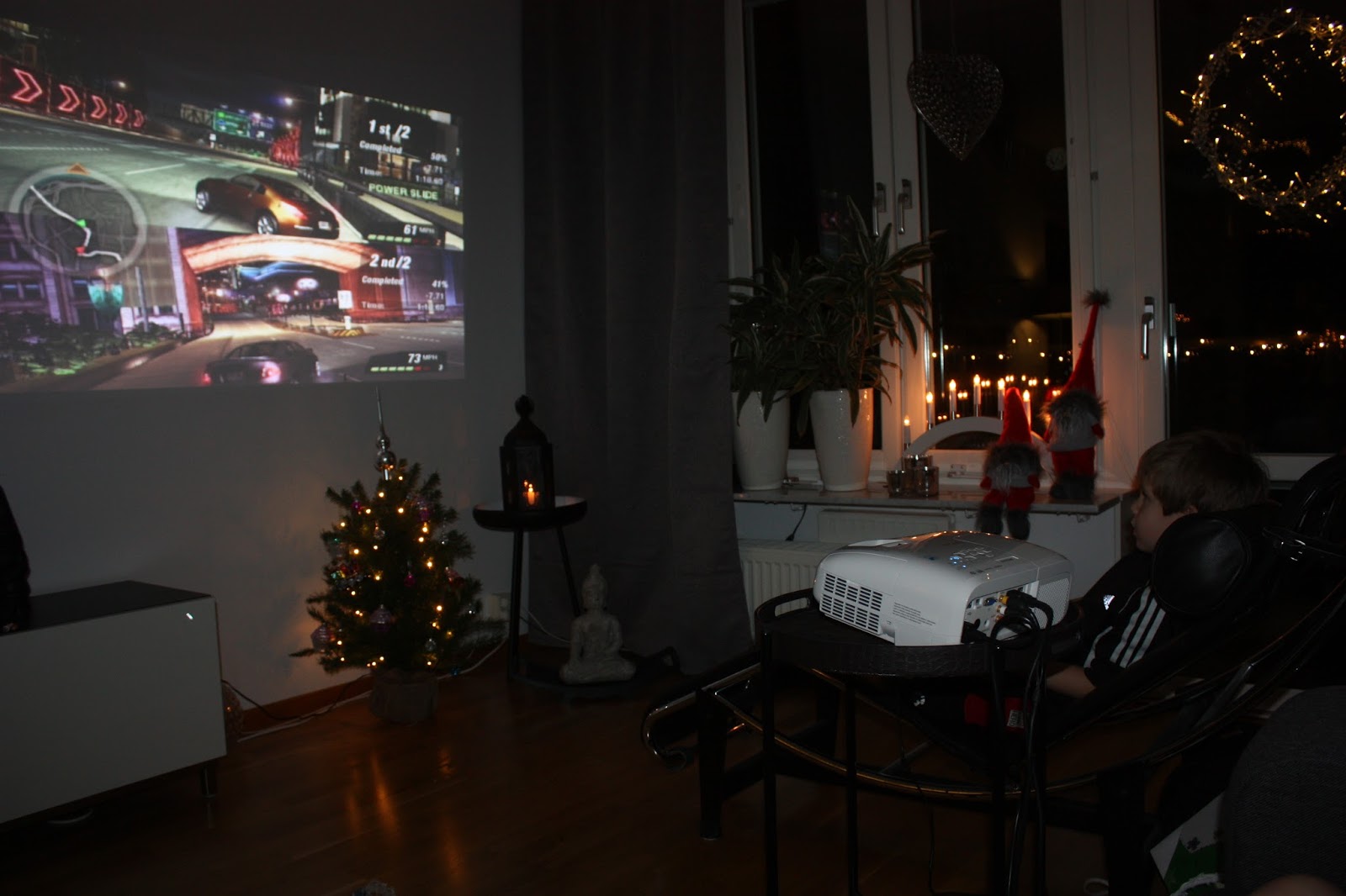 Den är dessutom så enkel att flytta så Max har den ibland i sitt rum och kopplar in X-boxen i den och Smilla har filmmys inne på sitt rum med sina kompisar. Man behöver dessutom inte ha någon filmduk utan man tittar rakt på väggen eller man kan till och med ligga i sängen och kolla på film i taket 🙂