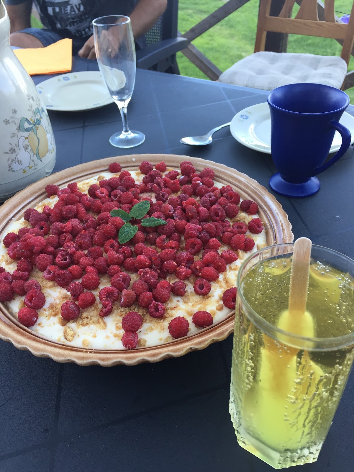 Det var inte bara jag som bakade utan jag blev även bjuden på en Lakritskladdkaka av min lillasyster och den var ljuvligt god! Just nu växer det massa hallon överallt så därför blev det ”hallontema” denna födelsedag både på hennes kaka och min kaka och det kändes så lyxigt eftersom jag älskar färska hallon!