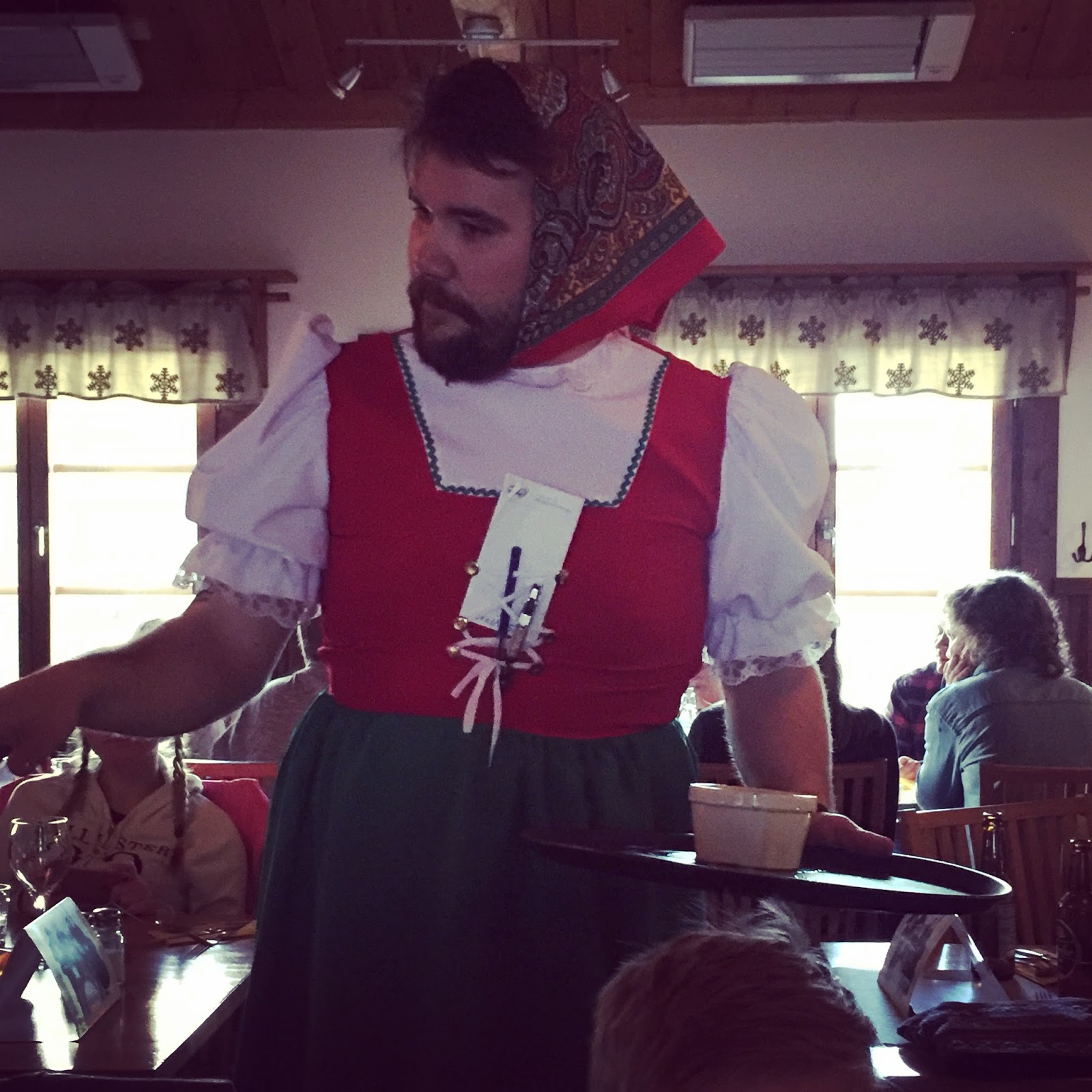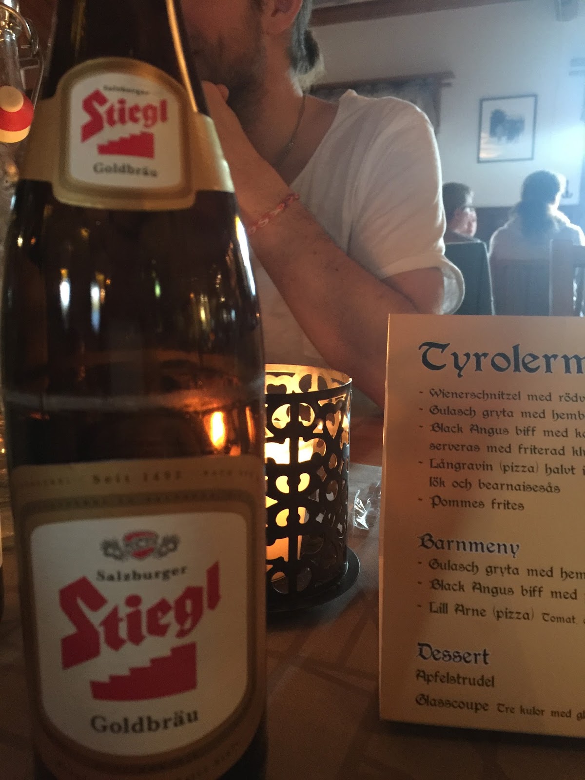 Första kvällen blev vi hembjudna till Patrik Isaksson på middag och han bjöd på fantastisk thaimat som jag ska försöka få receptet till. Igår kväll var det Tyrolerkväll på restaurang Drommen och det bjöds på Wienerschnitzel och annat gott och vi lyssnade på Tyrolerbandet ”Hellre än bra” som kvällen till ära var utklädda till påskkärringar och självklart var även Patrik uppe och gästade lite.