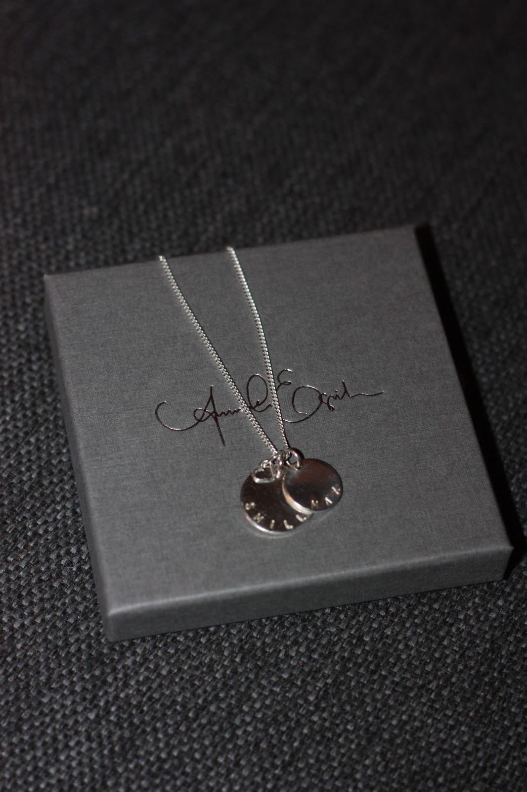 Amanda Egilson är en super gullig tjej som designar och tillverkar unika smycken. Hennes företag heter Namnsmycken.com och när man köper ett smycke av henne så är det även en investering i ett genuint hantverk som förmedlar kärlek, närhet och glädje. Det handlar om en vackrare vardag med bestående minnen av kärleksfulla relationer. Alla namnsmycken görs för hand efter din beställning. Budskapet är valt av dig, det kan vara några vackra ord, dina barns namn eller något som bara ni två känner till. Amanda slår in varje ord, bokstav för bokstav med sin morfars gamla hammare. Jag bär själv ett jätte fint Coin namnhalsband med mina barns namn på och jag älskar det!!!