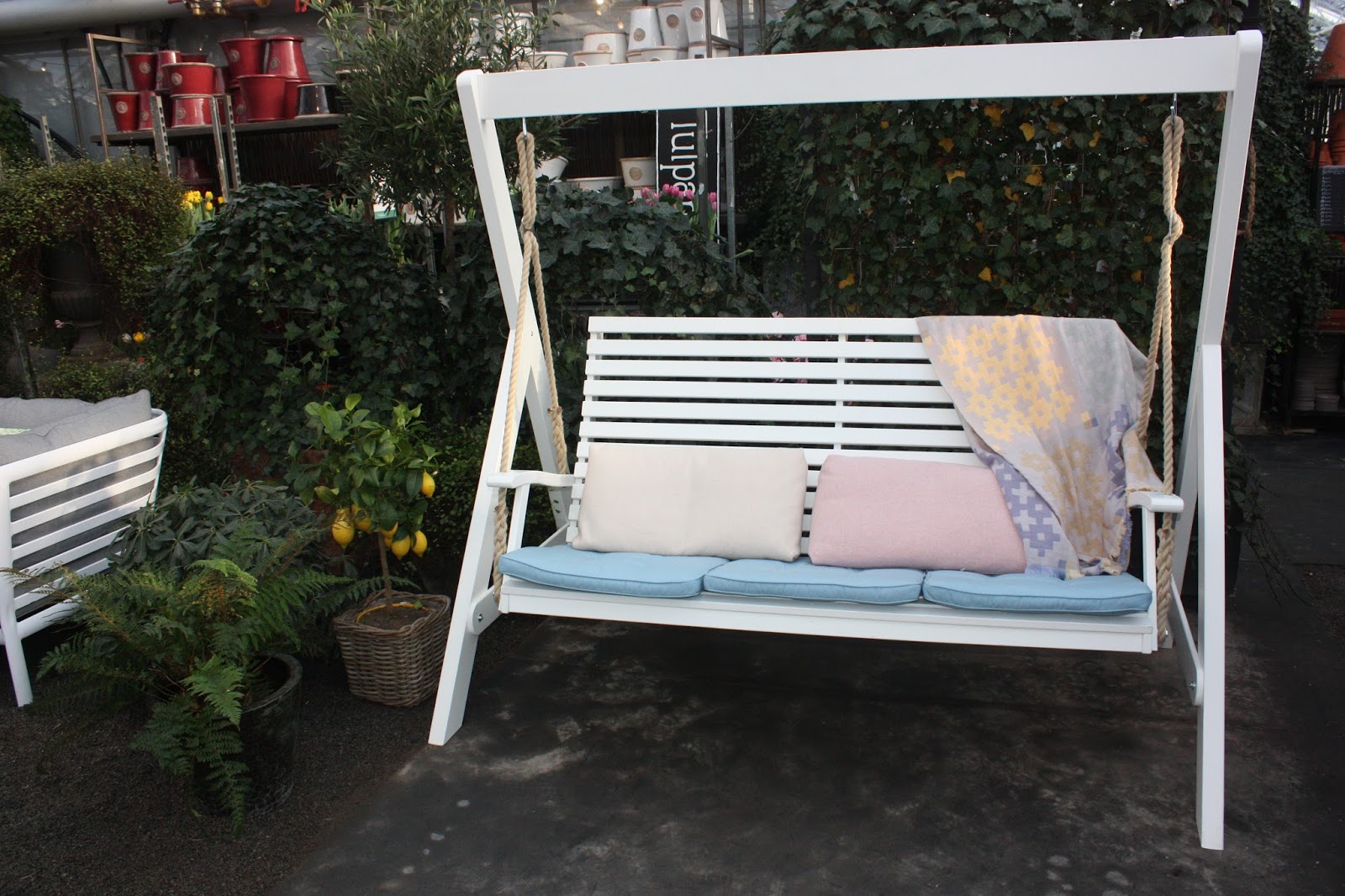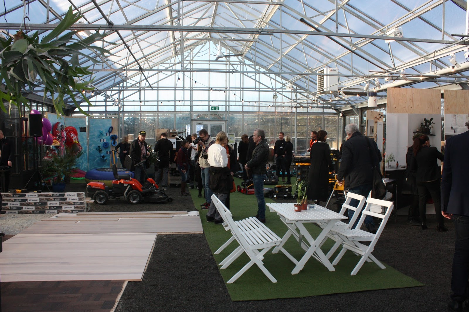 Solen sken och det blev ett fantastiskt ljus i det stora fina växthuset. Det kändes lite som att gå runt på en mässa då flera företag var där och visade upp sina nyheter. Bl.a visades fina möbler från Hillerstorp.
