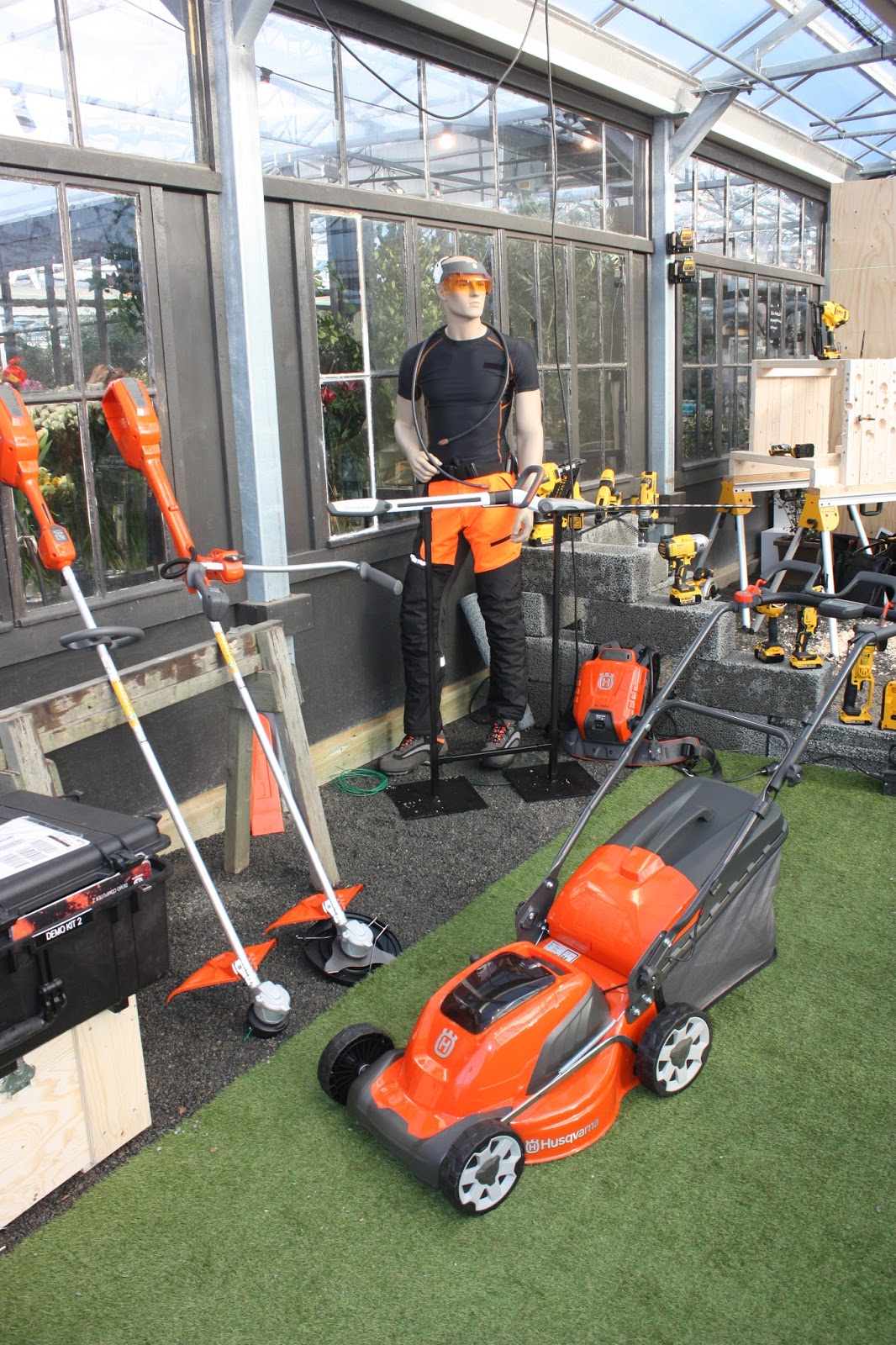 DeWALT, Jonsered och Husqvarna hade med sig allt vad man behöver för att hålla ordning på sitt hus både invändigt och utvändigt. Den stora satsning just nu är de batteridrivna verktygen och gräsklipparna. En batteridriven gräsklippare skulle jag vilja ha i stugan då en laddning klarar att klippa 450 kvm, den är smidig och tyst och det bästa av allt är att den går helt utan bensin och utsläpp!