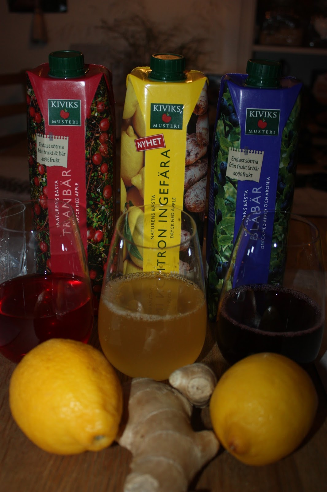 I samband med min prenumeration på Smakbox så har jag även fått prova Kiviks drycker, Naturens bästa. Det är en serie frukt- och bärdrycker där just naturens nyttigheter står i fokus. Dryckerna har 40% fruktinnehåll och all sötma kommer endast från frukt och bär. Helt ny på marknaden är smaken Citron & Ingefära, en frisk smak med sting och den ”vann” hos alla i testpanelen så till och med barnen gillar den, jätte bra! Vi fick även prova Tranbär och blåbär och de var också väldigt goda.