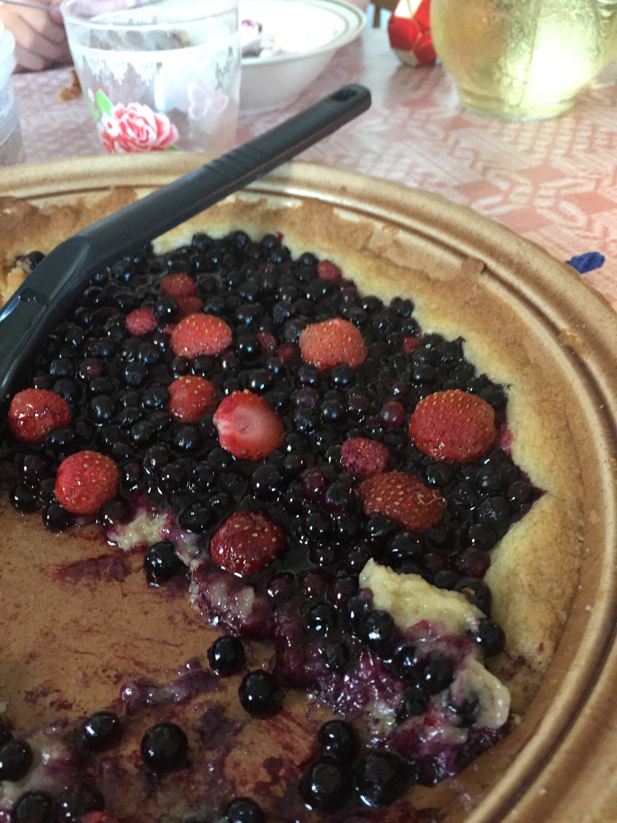 Det har börjat komma jordgubbar, smultron och blåbär också så i två dagar har vi gjort egna bärpajer som blev supergoda, lovar att dela med mig av receptet senare.