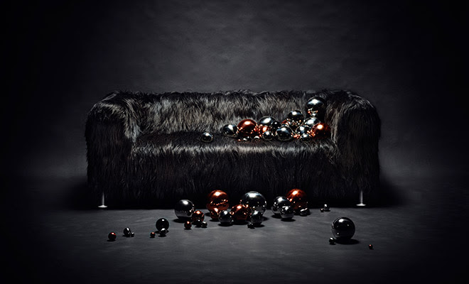 En ny designer som Bemz samarbetar med just nu är Tom Dixon och det samarbetet lanseras i februari 2018. Spana bara in denna coola soffa med haute couture överdrag i isländskt fårskinn!!!