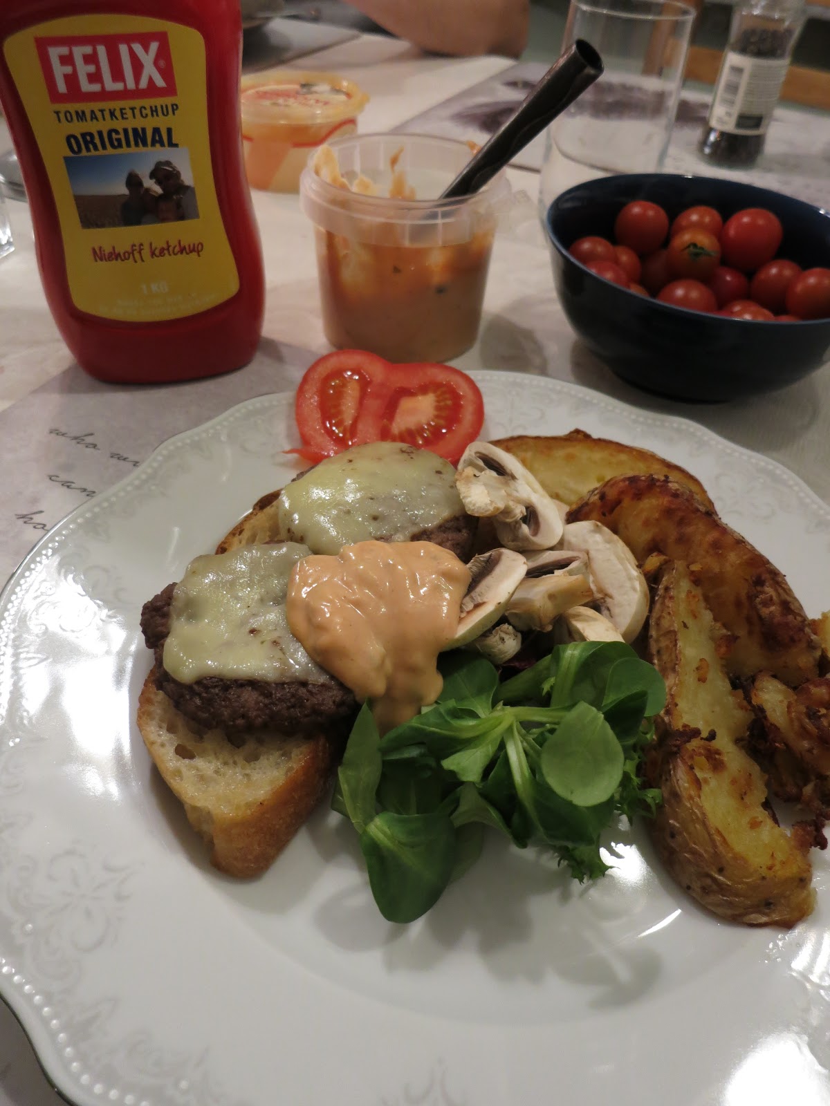 Gott att äta surdegsbröd till och vi lyxade även med ost på hamburgarna. Det enda negativa var att det var på gränsen för lite köttfärs men eftersom det fanns mycket tillbehör så blev vi alla mätta ändå!