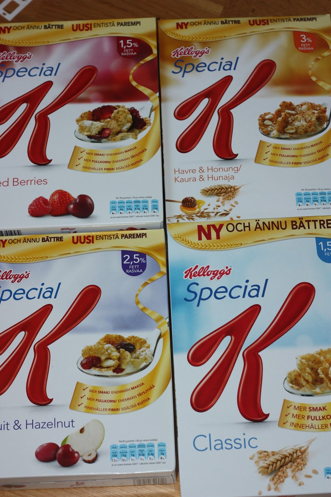 Jag har vunnit en årsförbrukning av flingor! 52 paket så de har väl räknat på ett paket i veckan, det är 4 olika sorter, Classic, Red Berries, Havre/honung och Fruit/Hazelnut. Som tur är så älskar vi flingor här hemma så det går åt mycket, vi har gett bort några paket bara för att vi inte fick plats av utrymmesskäl men nu jäklar ska det ätas flingor 🙂 Tack Kelloggs!!!