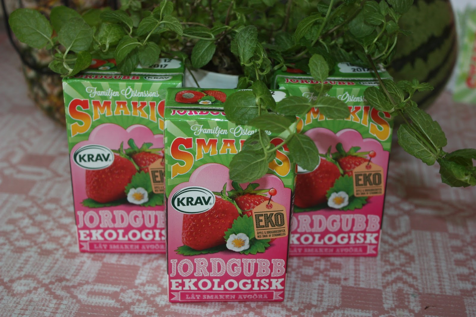 Nya ekologiska Smakis jordgubb är smaksatt av binas favorit citronmeliss. En god och läskande Smakis som barnen gillar. Med kom också en fröpåse citronmeliss!