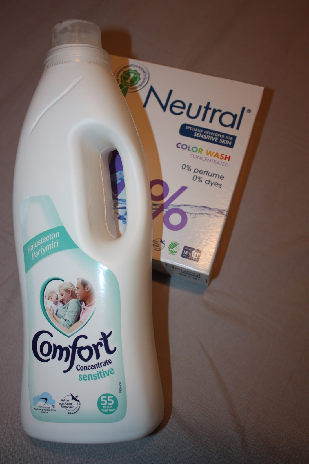 Neutrals tvättmedel som är utvecklat för känslig hud tillsammans med Astma- och Allergiförbundet. Ingen parfym och rengör och tar bort fläckar redan vid 30 grader. Comfort sköljmedel Sensitive är också parfymfri och skonsamt mot känslig hud. Vårdar din tvätt och gör den mjuk och fräsch!