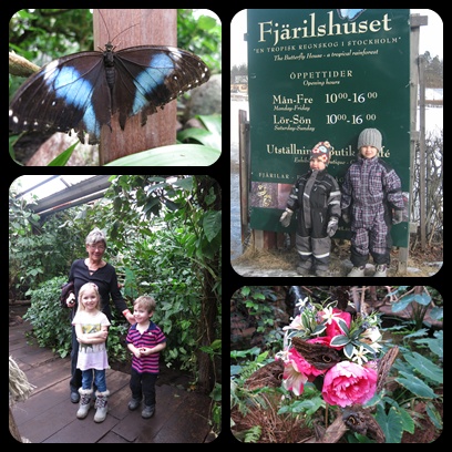 I måndags gick svärmor, jag och barnen till Hagaparken och besökte Fjärilshuset, barnen har pratat länge om det och nu blev det äntligen av! Fjärilar är väldigt vackra men barnen tyckte att det var lite läskigt när de flög omkring och nästan satte sig i håret på oss men de färggranna fiskarna gillade de!