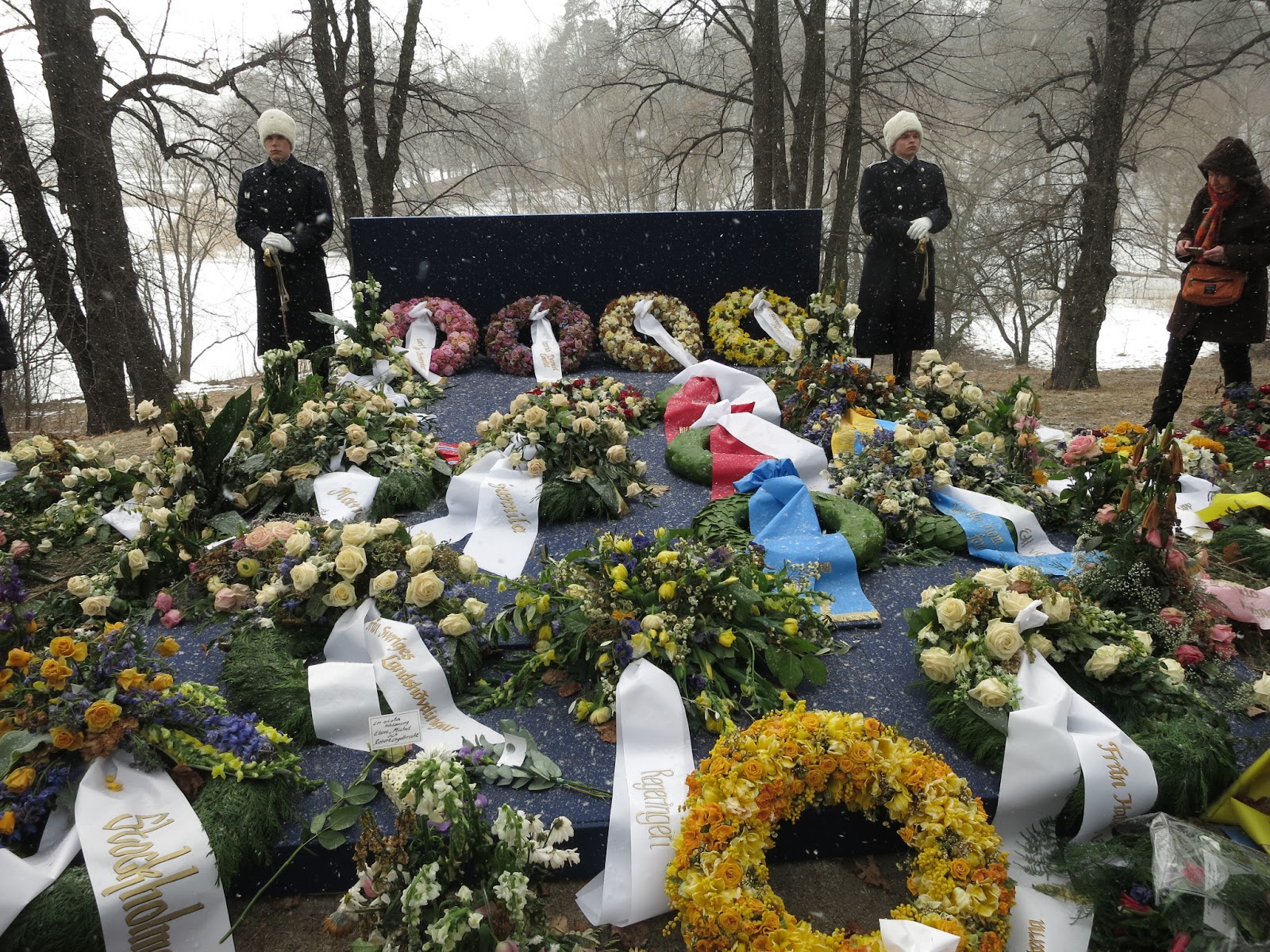 Sen gick vi förbi Prinsessan Lillians grav och kollade på alla vackra blommor som folk lagt där: