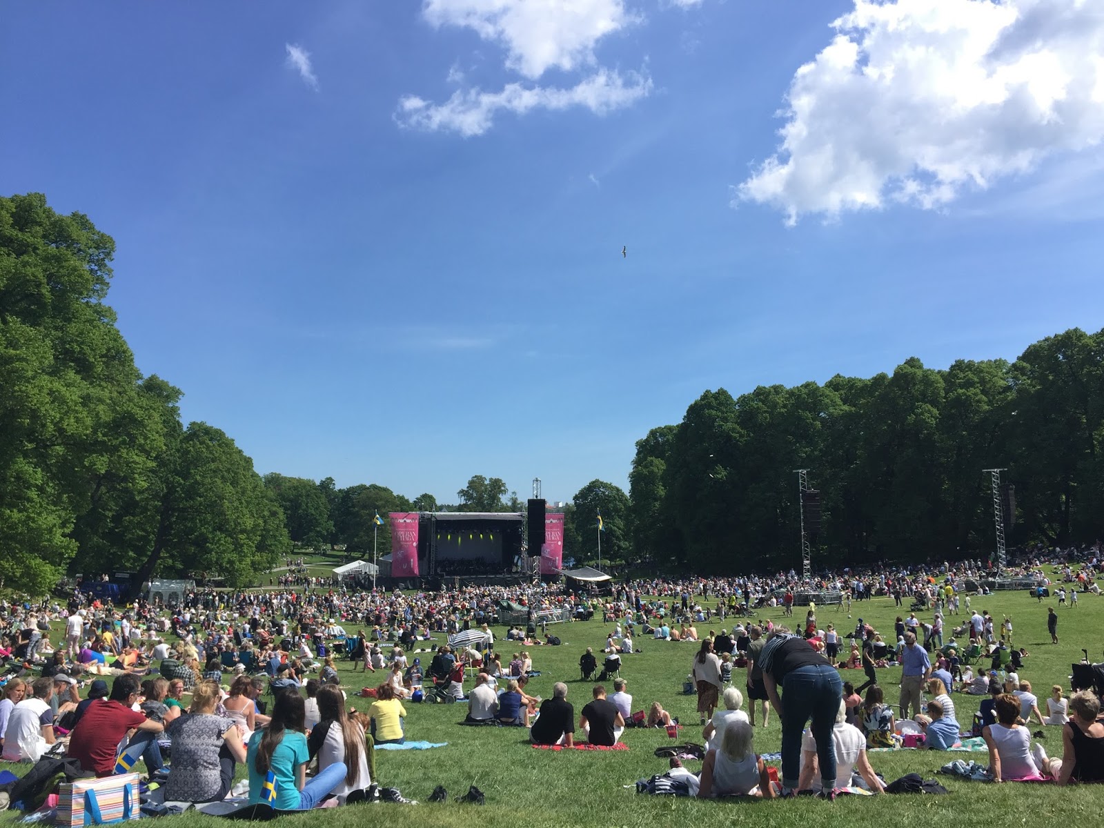 Igår firade vi Sveriges Nationaldag och vi började med att cykla till Hagaparken och satt i i gräset och åt glass och kollade på balett och lyssnade på opera. Vädret var fantastiskt och stämningen väldigt harmonisk och trevligt men barnen blev lite rastlösa så vi cyklade vidare till Golfängarna i Sundbyberg där det var betydligt högre drag! Där var det mattält, tivoli, massa artister som uppträdde och många andra aktiviteter. Så efter att ha ätit lite mat, gått omkring och tittat på lite djur, kollat på Wiktoria när hon uppträdde från stora scenen så åkte vi karuseller tills vi blev helt slut. Nästan så att vi inte orkade cykla hem 😉 Summa summarum så blev det en jätte bra nationaldag och familjedag som vi tog väl hand om eftersom Jocke åker till Kina idag och ska vara borta i TRE VECKOR!!! Phu, vet inte hur vi ska klara detta men det går nog. Det är ju bara en vecka kvar innan det är sommarlov…