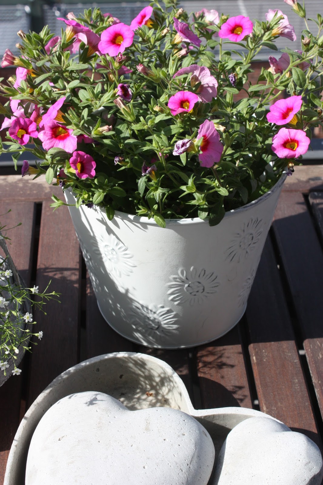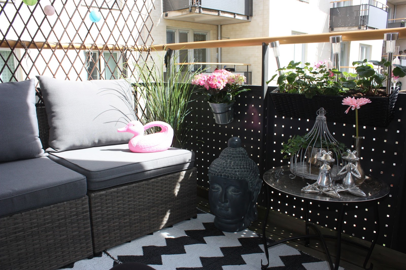 Jag har nu piffat klart på balkongerna och jag älskar att sitta där ute och njuta, det blir ju som två extra rum man kan vara i. Lyxigt! På söderbalkongen ser det ut så här, det är även soffor på höger sida.