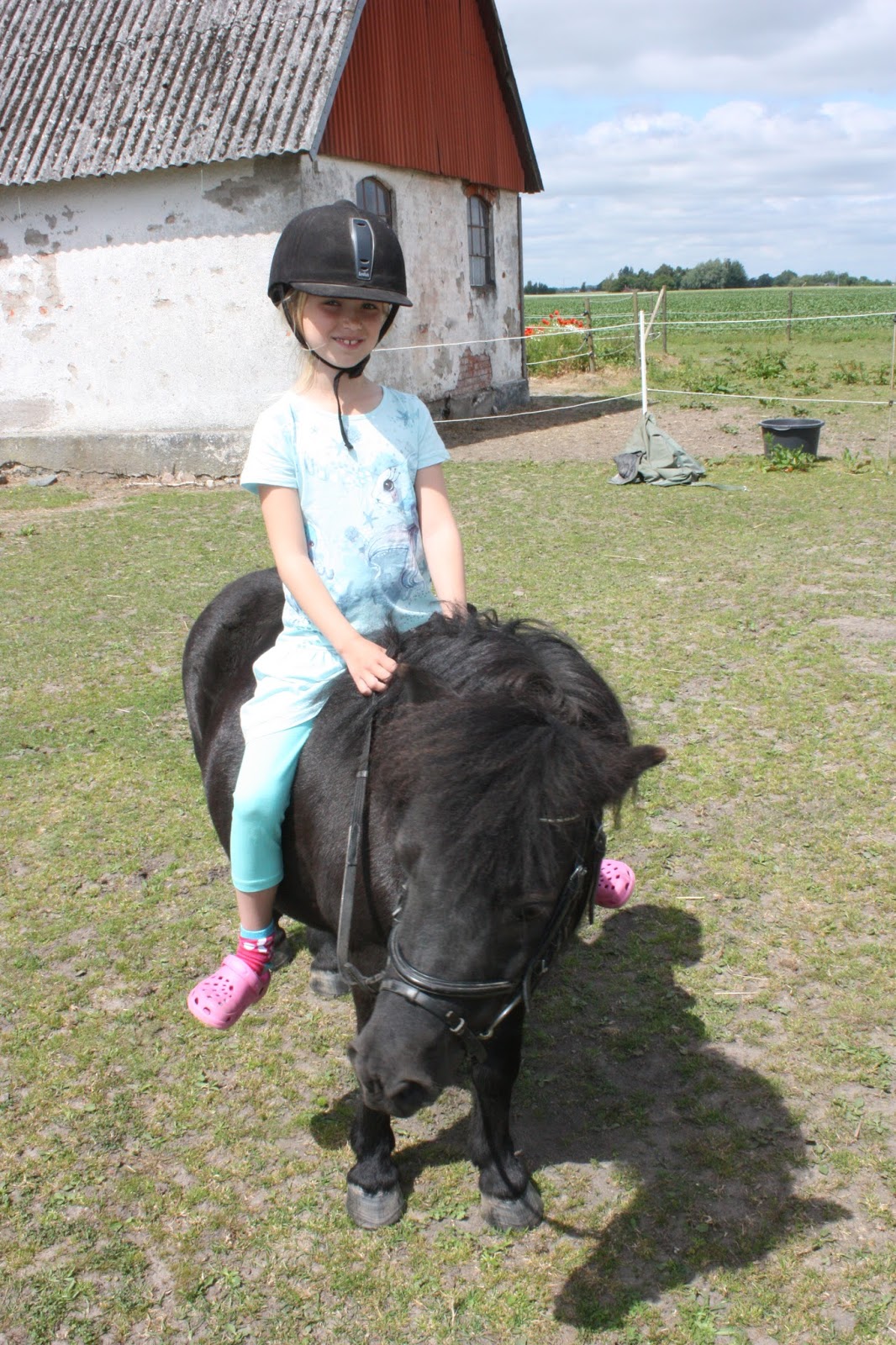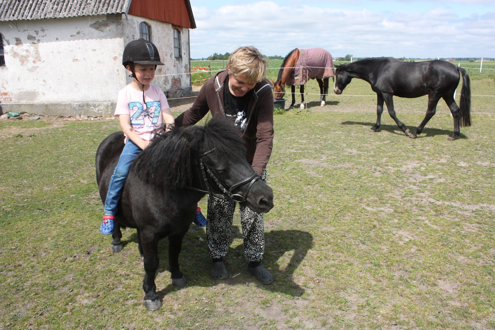 I söndags var vi först hos Jockes syster Lotta och hälsade på och där älskar barnen att vara då det finns både hästar, hundar och katter. Barnen älskar ju hästar och blev överlyckliga då de fick rida en sväng i hagen.