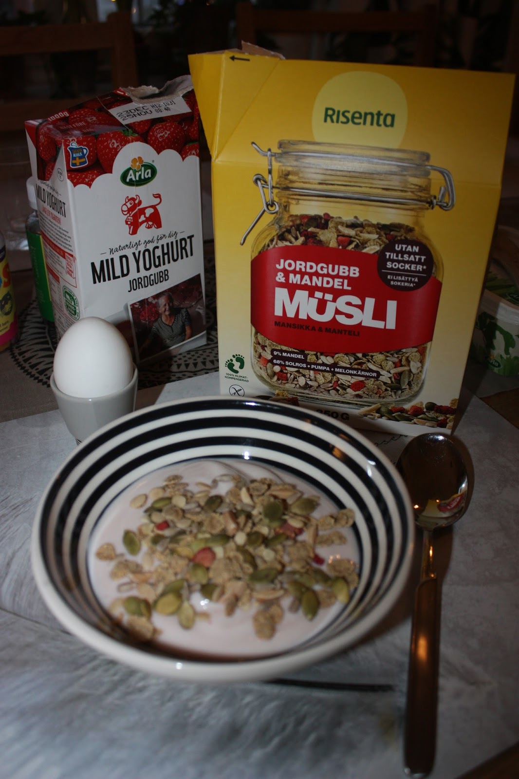 Eko Musli jordgubb & mandel från Risenta provade vi redan på första frukosten och den får tummen upp av oss.