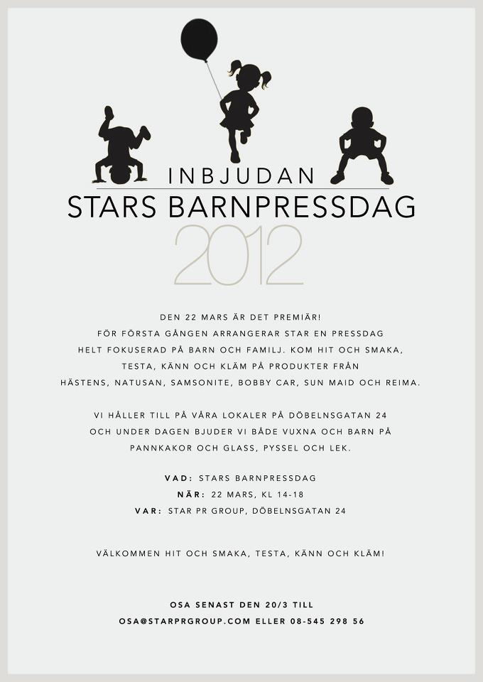 Nu ska jag iväg och hämta barnen på dagis, det blir bara en halvdag för dem idag eftersom vi ska iväg på en ”barnpressdag” hos Star PR klockan 14.00. De bjuder på pannkakor, glass, pyssel och lek för barnen och vi ”vuxna” ska gå runt och gotta oss i produkter från Hästens, Natusan, Samsonite, Bobby Car, Sun Maid och Reima.
