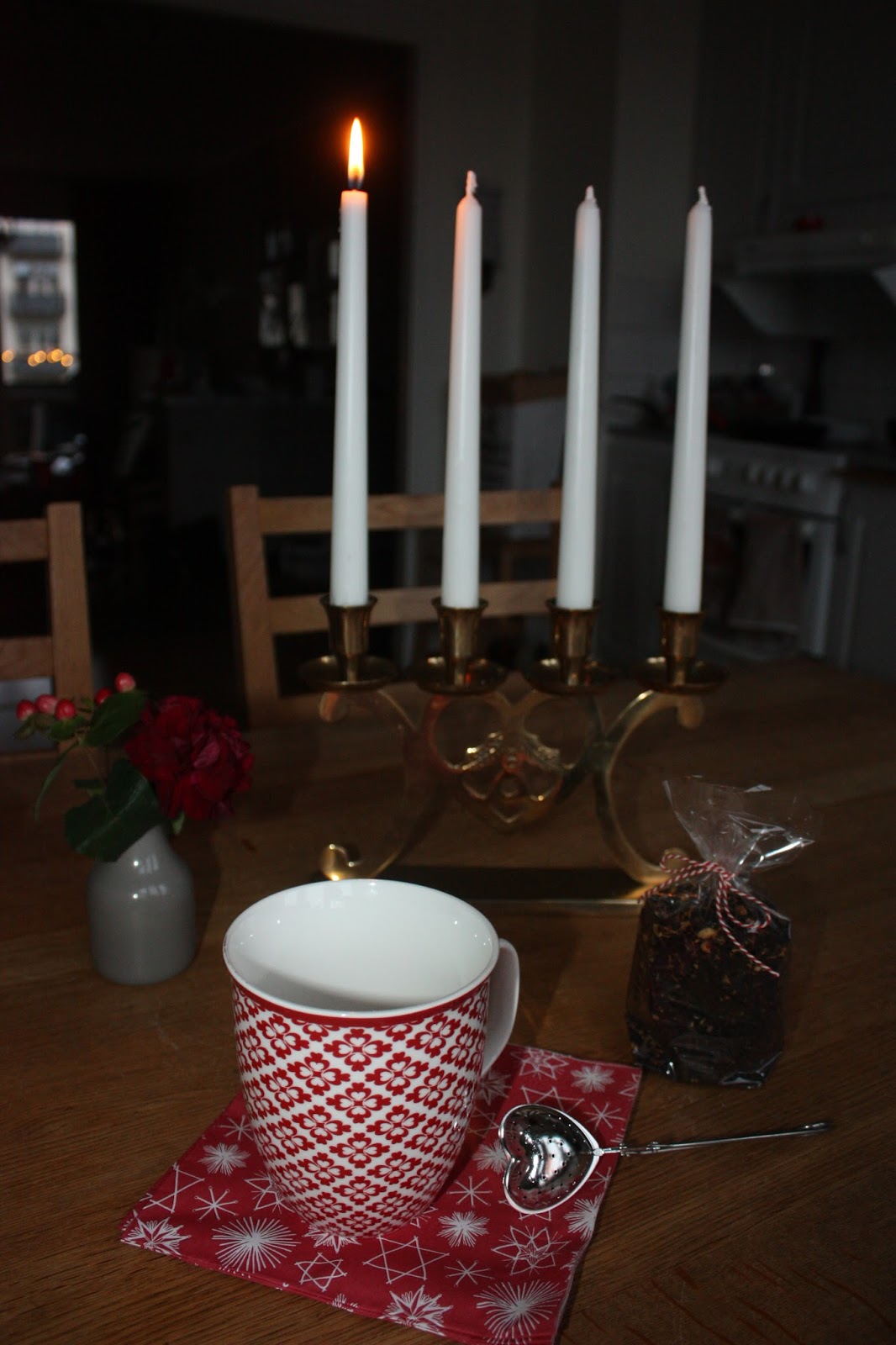 Till frukost tände vi första adventsljuset och sen satte jag igång och bakade och började förbereda årets adventslunch som vi planerat för oss och våra vänner Annelie, Kjelle och Pontus.