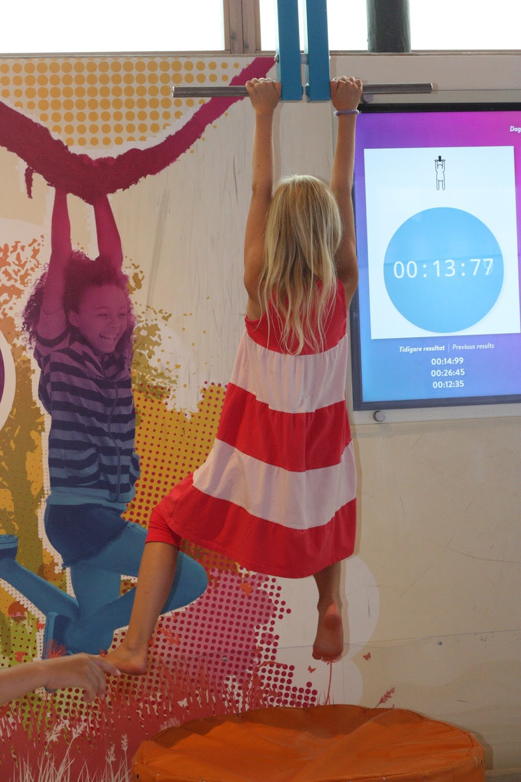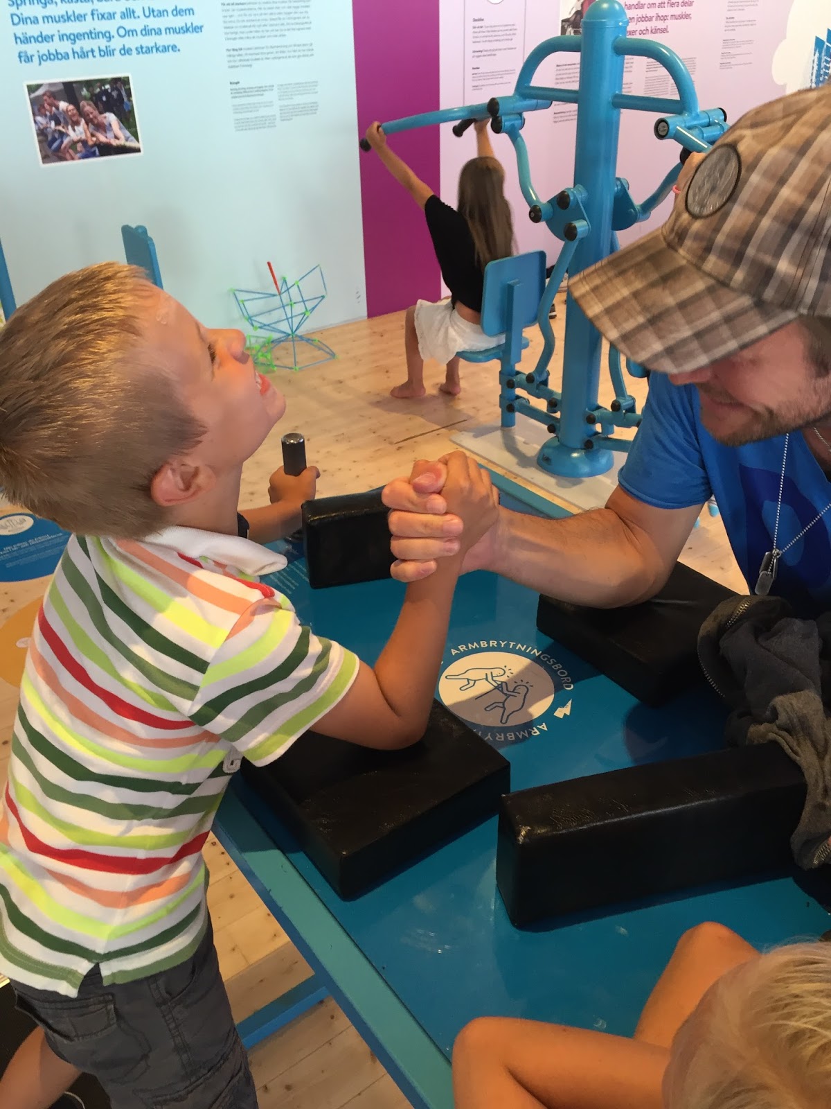 Vi spenderade mycket tid inne på ”hälsa” då båda barnen lekte ”Gladiatorer” och testade sin uthållighet och styrka.