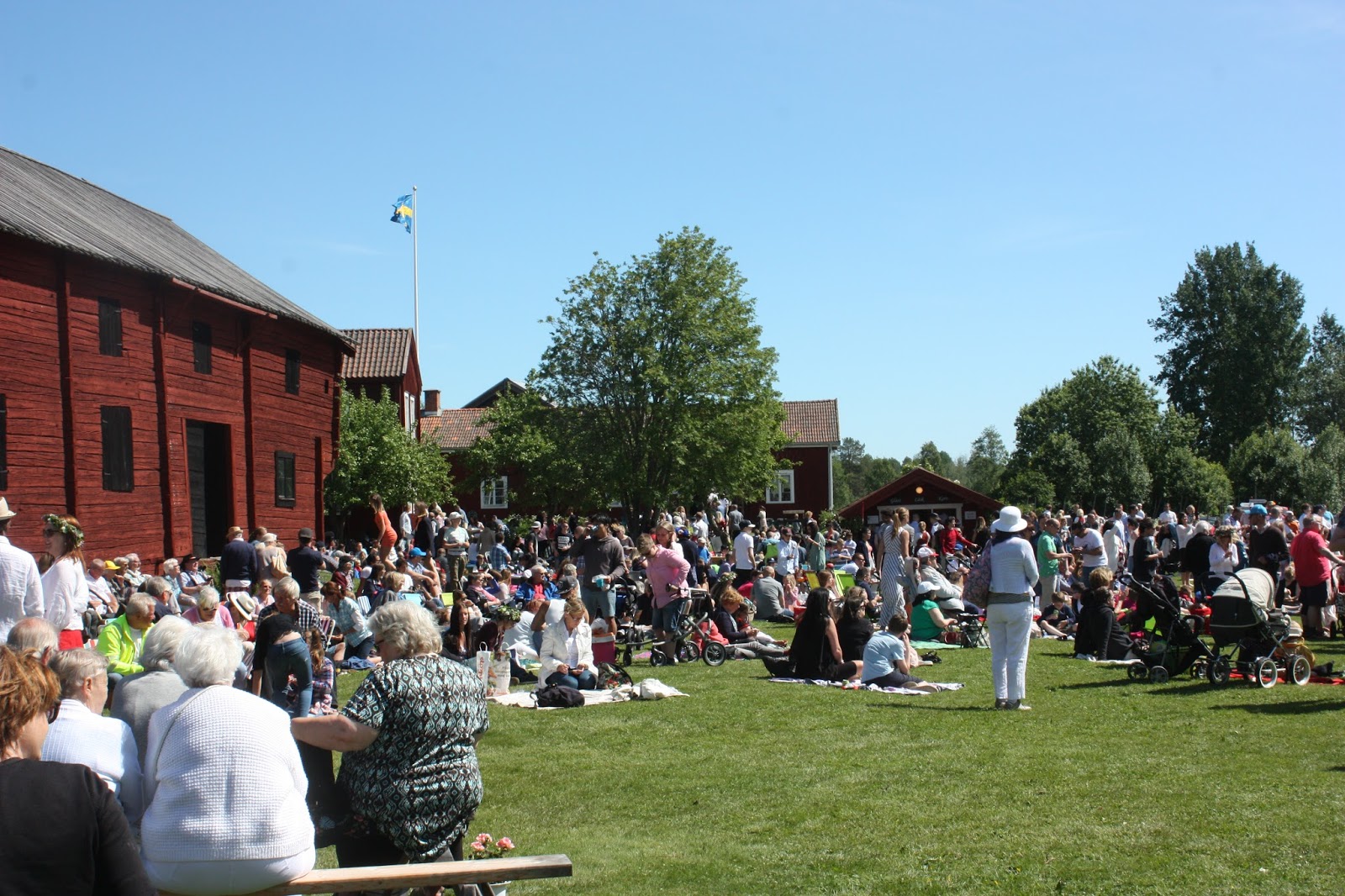 Vi hade en mysig traditionell midsommarafton igår. Solen sken och jag och barnen åkte till Forsa Forngård i Fränö där vi alltid firar. Där känner man typ alla känns det som och det är alltid roligt att gå omkring där och prata med folk, ta lotter på Tombolan, fika, äta ostkaka, dansa runt midsommarstången, åka häst och vagn och massa annat. Bara Jocke som saknades 🙁