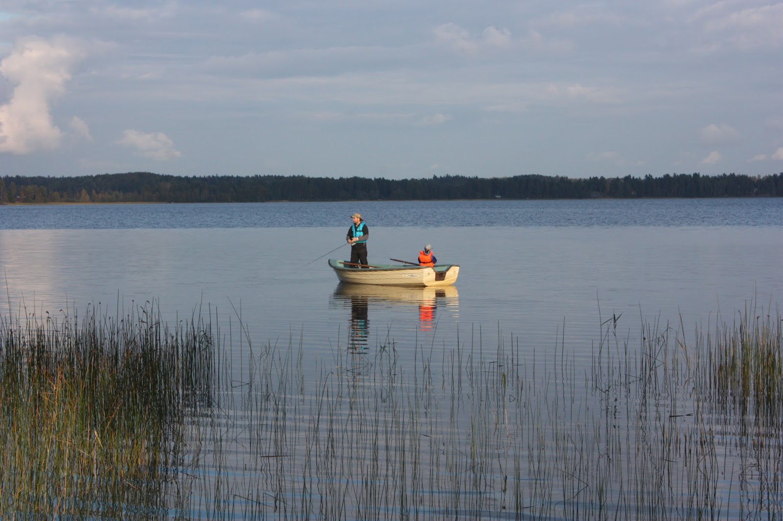 Nu är vi uppe i Hälsingland i stugan, vi kombinerar jobb med nöje vilket är perfekt att man kan göra när man är egenföretagare! Igår sken solen när vi kom men idag är det lite mer mulet men det hindrar inte grabbarna från att åka ut med båten och fiska 🙂