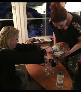 Sen kom Shirley och Vilja förbi och medan tjejerna lekte så satt vi mammor och snackade inredning och spöken och drack både vin och kaffe/minttu. Sen blev det en liten paus för middag på varsitt håll innan det var dags att sammanstråla igen och då gick vi upp till dem för att krama ur det sista i mitt vinägg och dricka lite mer kaffe/minttu. Alltså, jag vet inte om det är så gott egentligen att dricka kaffe med minttu men det blev så idag istället för oboy/minttu som egentligen är min favorit och som blivit ett ”måste” när jag är i fjällen. Jocke och Daniel kollade fotbollen och barnen gjorde olika shower för oss där de turades om att dansa och sjunga och de hade även självaste Shirley Clamp som gästartist 🙂 Så himla söta och duktiga!