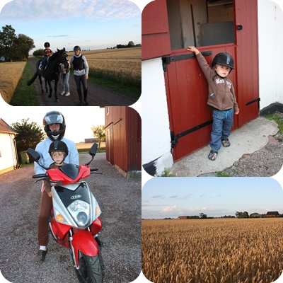 Igår åkte vi till Jockes syster Lotta med familj och blev bjudna på Tacos till middag och efter det hann barnen både rida (eller ”åka häst” som Max säger), åka moped och bada i deras swimmingpool.