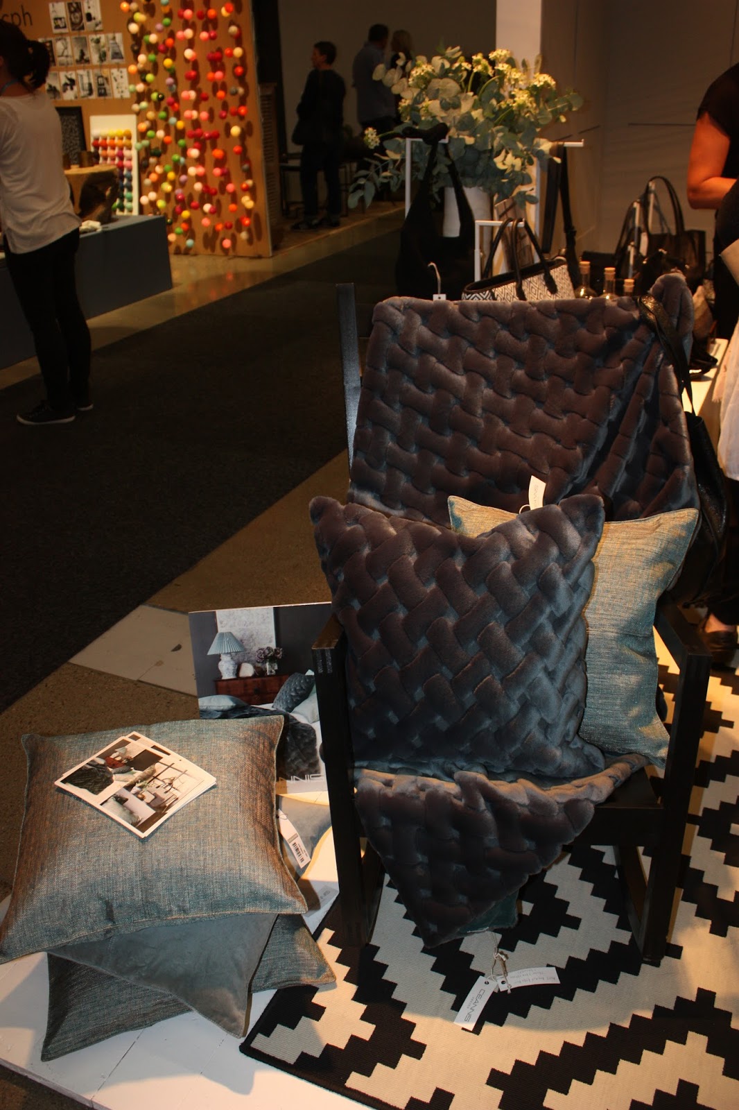 Päls fortsätter att vara trendigt och i Ceannis monter kunde man hitta många vackra plädar, kuddar och handväskor.