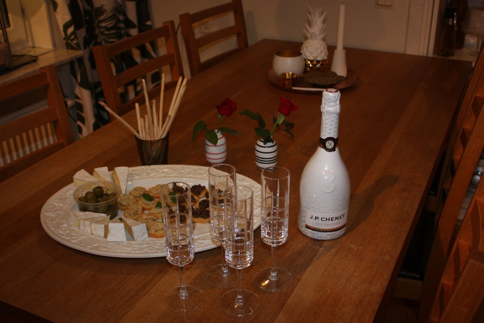 Igår var våra vänner här och åt middag och det var jätte mysigt! Det blev trerätters middag, bubbel och gott rött vin direkt från den franska vingården som Jocke spelade på för ett tag sen.