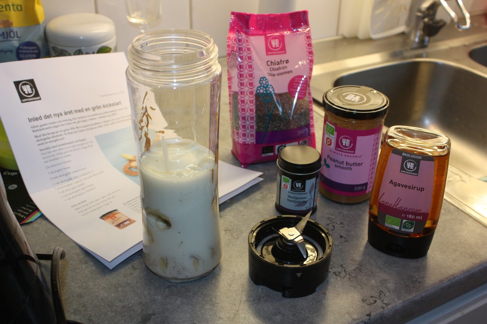 Det är Urtekram som tipsat om receptet som man gör av deras ekologiska produkter. En smoothie som är en riktig energiboost.