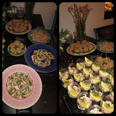 Det bjöds på lyxiga snittar, minihamburgare, räkcocktails, omelettrullar, chokladpraliner och självklart massor av goda drinkar!