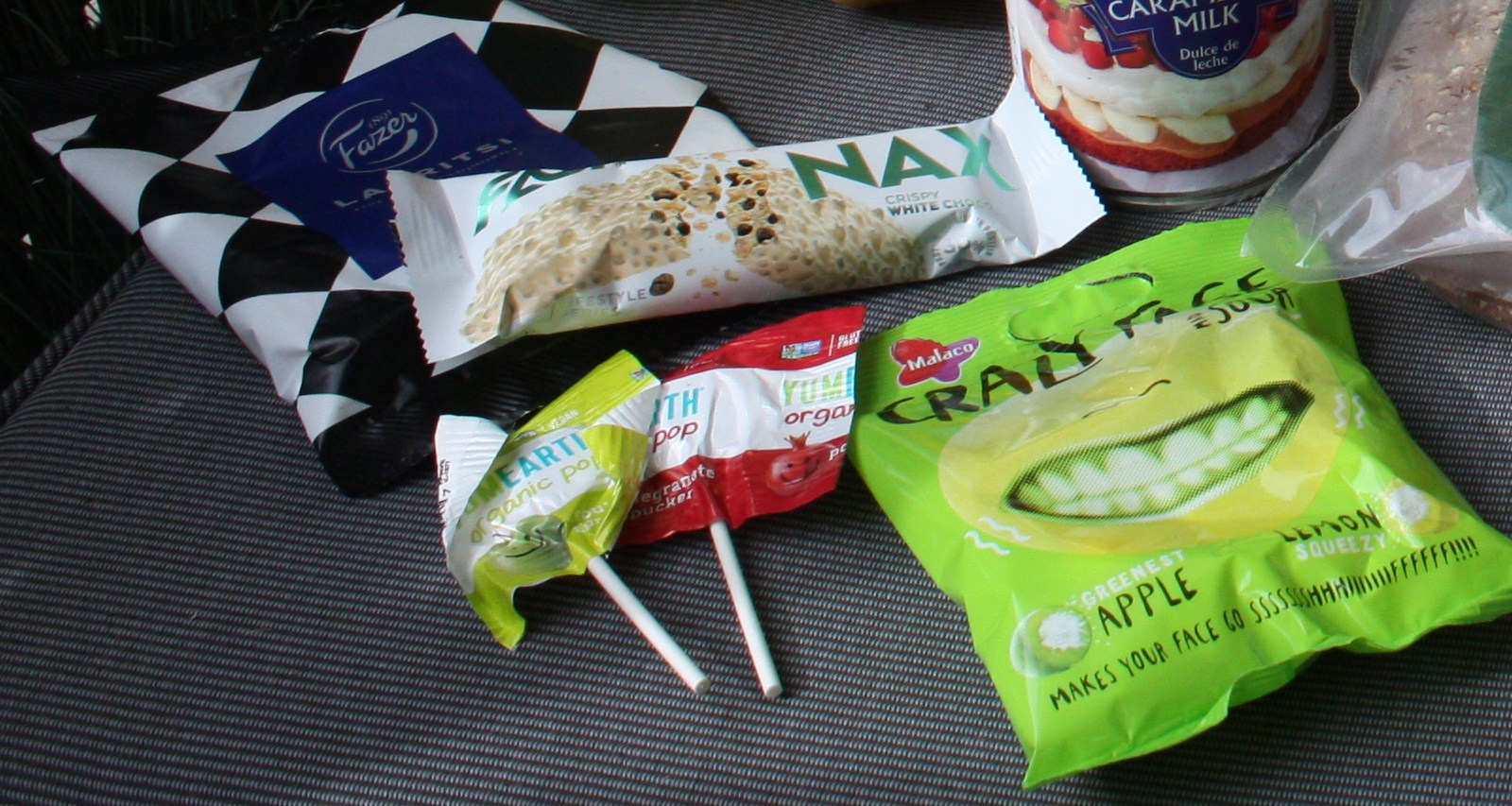 Sen försvann allt godis i ett nafs! Sjukt god Fazer lakrits som är mjuk och försvinnande god! Gelantinfria och helt utan onödiga tillsatser! Crazy Face Sour från Malaco var sura men också väldigt goda. Mjuka och sega godiskulor med sur pulverfyllning. Organics Pops klubborna är ekologiska och utan onödiga tillsatser, utformade med YumEarths legendariska smaker.