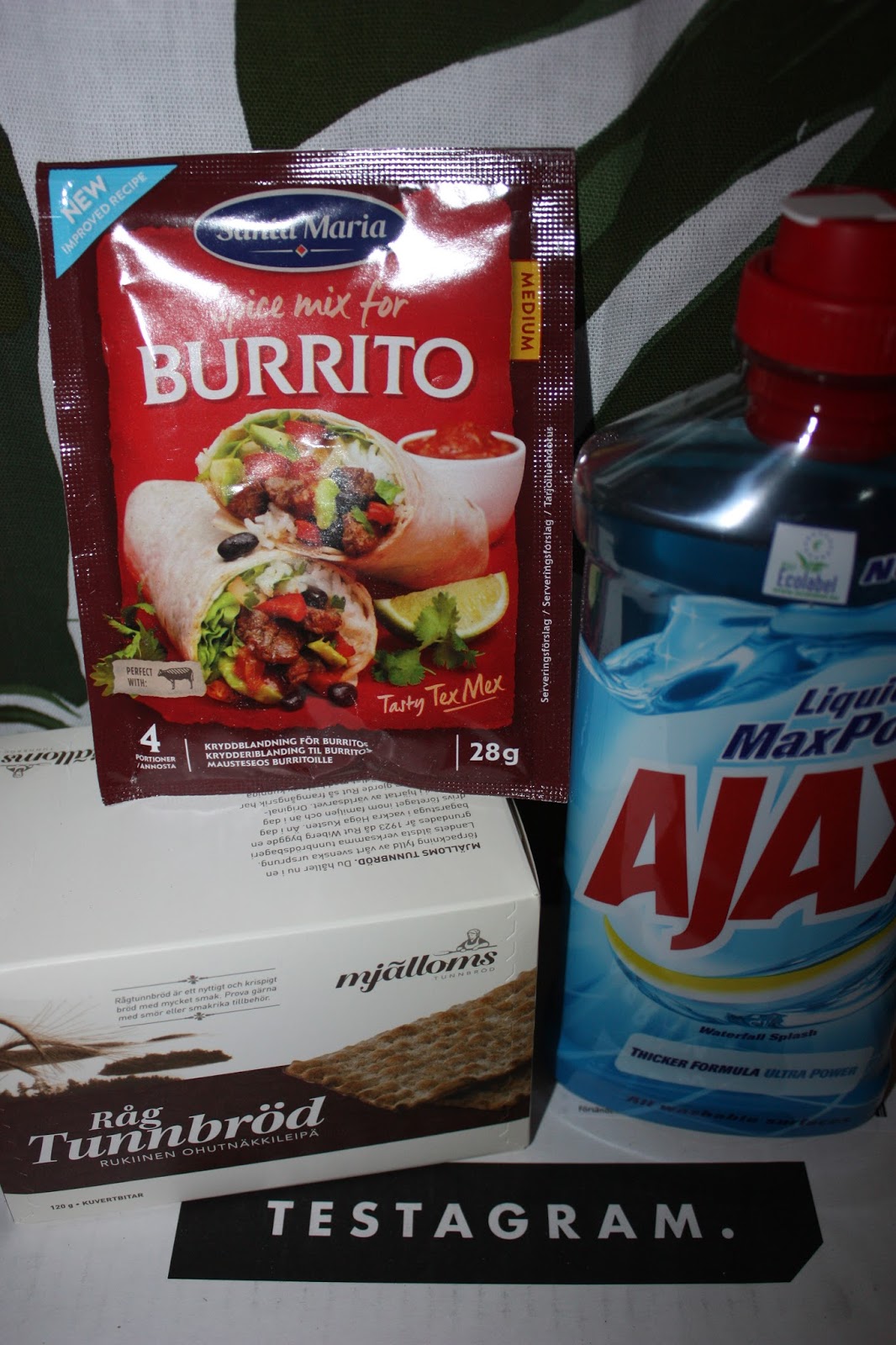 Nu ska jag visa er vad som var i månadens Testagram-box! Den här gången var det fokus på GODIS och det älskar vi ju här hemma så denna box försvann rätt snabbt ner i våra magar! Förutom Ajax Max Power då som kanske inte är så gott att äta men som är en utmärkt allrengöring som gör rent och fräscht i hemmet! Efter att gått runt med denna på både golv och möbler så doftade hela hemmet fantastiskt gott och den kraftfulla formulan gjorde verkligen rent hus, sånt gillar vi! Twix Bites och Snickers Bites är gamla godingar i ny förpackning och utförande. Små goda bitar som är mycket lättare att äta än deras större originalbitar, perfekt också att ha i bilen vilket vi hade på vägen ner till Skåne. M&M Peanut är jordnötter med läcker mjölkchoklad och med ett krispigt färgglatt lager av socker, försvinnande gott och så beroendeframkallande! Fisherman´s Friend Rasberry har en fräsch fruktig smak som är lite mildare än de andra pastillerna men minst lika god och en ny favorit att ha med sig i handväskan. Extra Polar Ice är en isande god nyhet som ger dig en fräsch känsla i munnen, ett sockerfritt tuggummi som innehåller Xylitol. Sen följde det även med ett tunnbröd, nämligen Mjälloms Tunnbröd Råg som är ett rustikt och smakrikt tunnbröd som är gott att äta med bara lite smör men även till ostbrickan! Det enda jag inte hunnit prova än är Santa Maria Burrito Mix som innehåller chilipeppar, rökt paprika, ingefära och spiskummin. En krydda som passar perfekt till både kött och färs så den ser jag mycket fram emot att prova!
