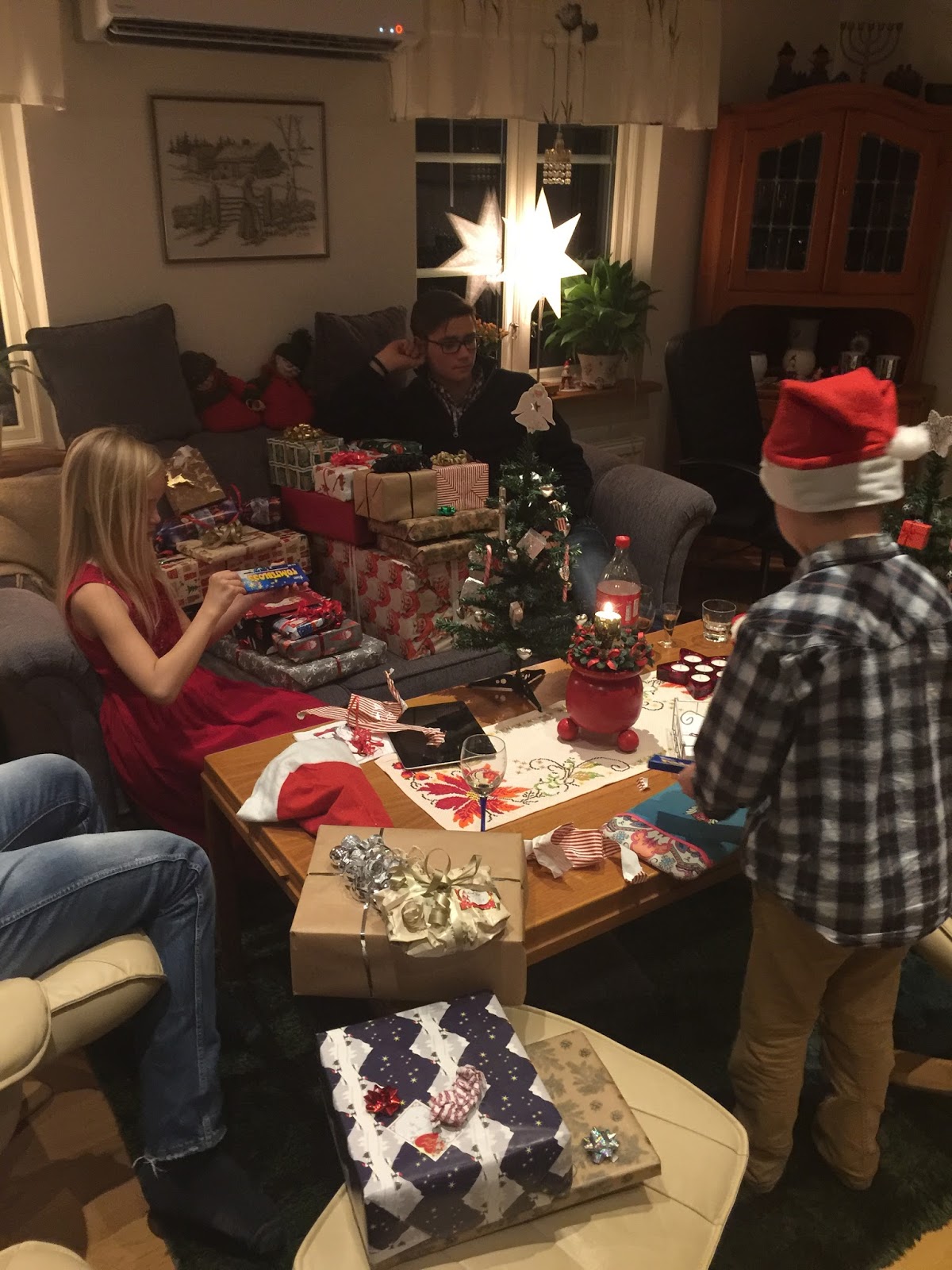 Lagom till Kalle Anka hade vi bytt om och satt med en glögg i handen och DÅ, DÅ kände jag att jag slappnade av för första gången på jag vet inte hur länge…. det började värka i mina ögon, huvudvärken kom som ett brev på posten och jag kunde knappt hålla mig vaken. Men vi hade en jätte mysig och lugn jul tillsammans med Jockes föräldrar och hans bror med familj, vi spelade julklappsspelet, barnen lekte med sina julklappar och vi åt alldeles för mycket god mat.