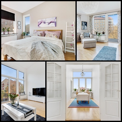 Det är fantastiskt med helg men de går ju så fort och ofta är vi så fullbokade med aktiviteter. I helgen har Jocke varit iväg och spelat i både Örebro och i Karlstad så jag och barnen har varit hemma själva. Det har varit kalas och dansuppvisning och idag har jag stylat en lägenhet som det varit visning på. Älskar homestyling och jag hoppas verkligen på ännu fler uppdrag så om ni känner någon som ska flytta och behöver hjälp med styling så tipsa gärna! Lägenheten som är till salu just nu är en underbar etagetakvåning i Solna med 4 balkonger och 5 rum och kök! Som tur var hann vi fotografera balkongerna innan snön vräkte ner så det är därför balkongbilderna ser rätt somriga ut. Idag var de betydligt mer snöiga 😉