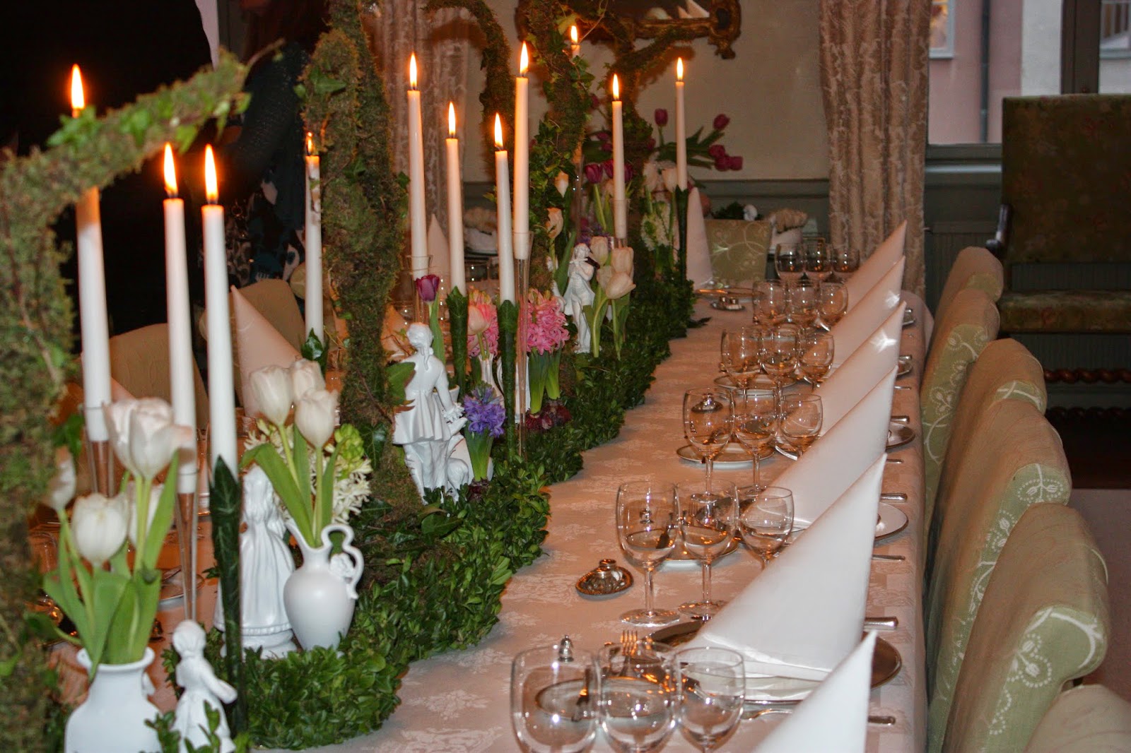 och vad sägs om denna matsal och den oerhört vackra dukningen?!