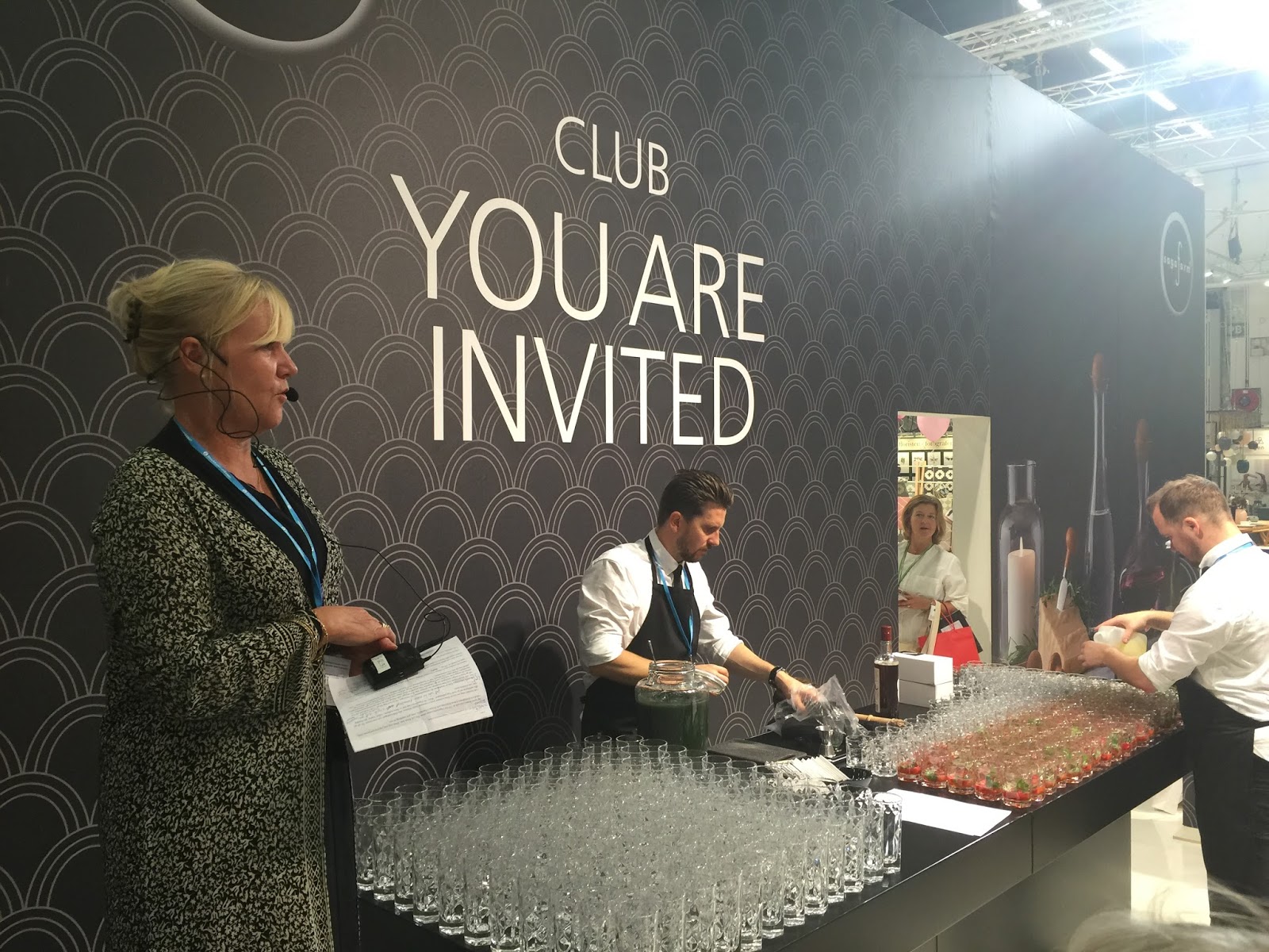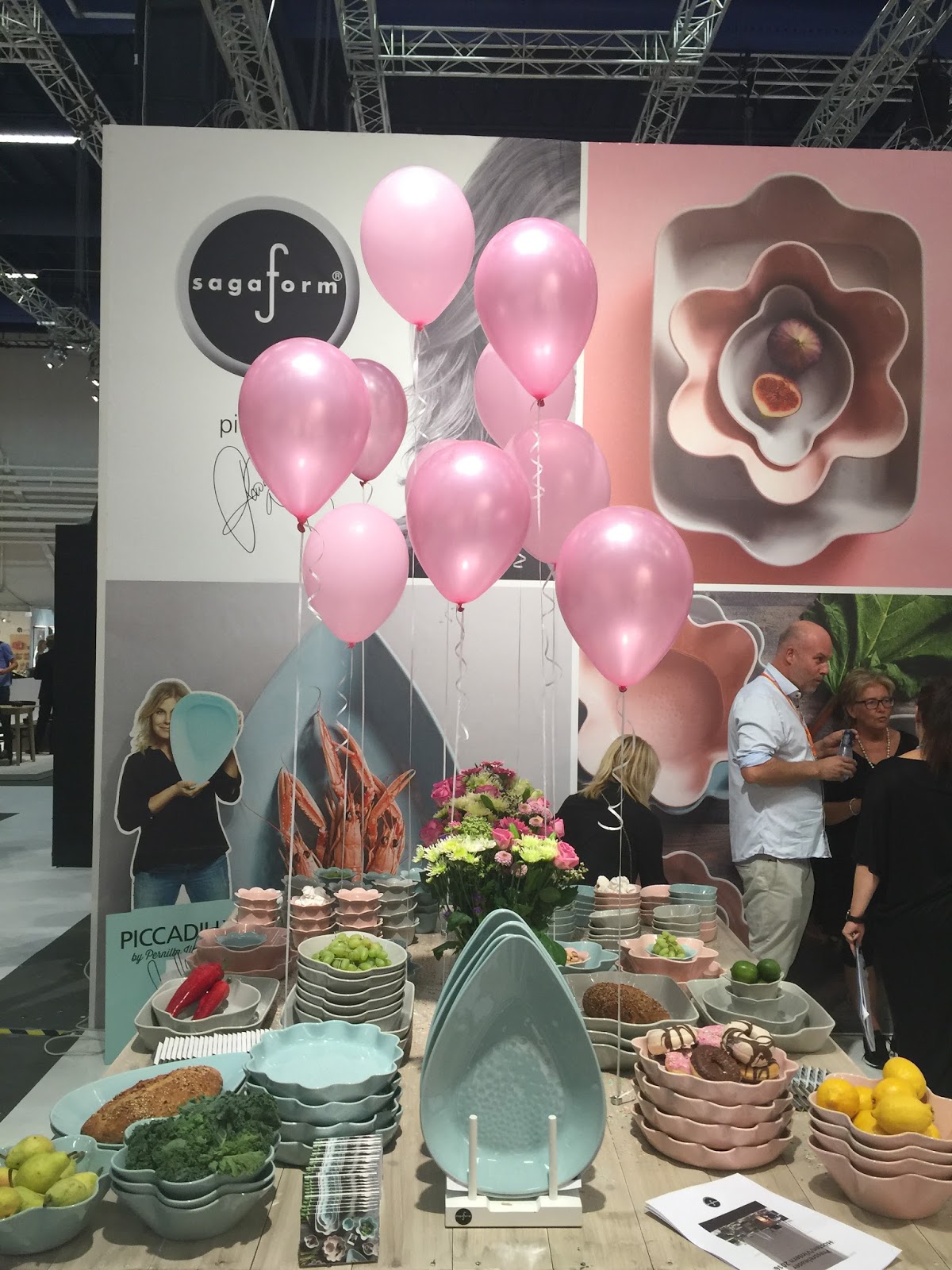 Så här såg det ut i Sagaforms monter, mycket fina glas från deras nya produktserie CLUB och härliga pasteller från Pernilla Wahlgrens servisserie Piccadilly.