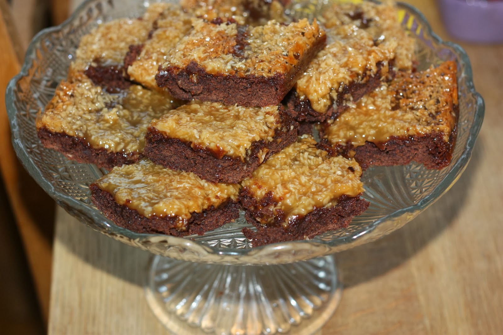 Förra sommaren bytte jag och min kompis Catrine lite favoritrecept och jag fick då ett recept på en Kokoskladdkaka som hon tyckte var jätte god. Jag la in receptet i min receptpärm men ”glömde” sen bort det då kokos inte är någon favorit hos mig….. Den sista tiden har dock min son Max börjat gilla kokos och då han fyller 4 år om 1 vecka så har jag börjat kolla vad jag ska baka till kalaset och blev då påmind om receptet. I lördags provade jag att baka dessa kokoskladdkakor och gissa om de blev goda?! T.o.m. jag som inte är någon kokosfantast gillade dem och barnen äter dem som godis! Det är en kladdkaka med ett litet segt kolatäcke ovanpå.