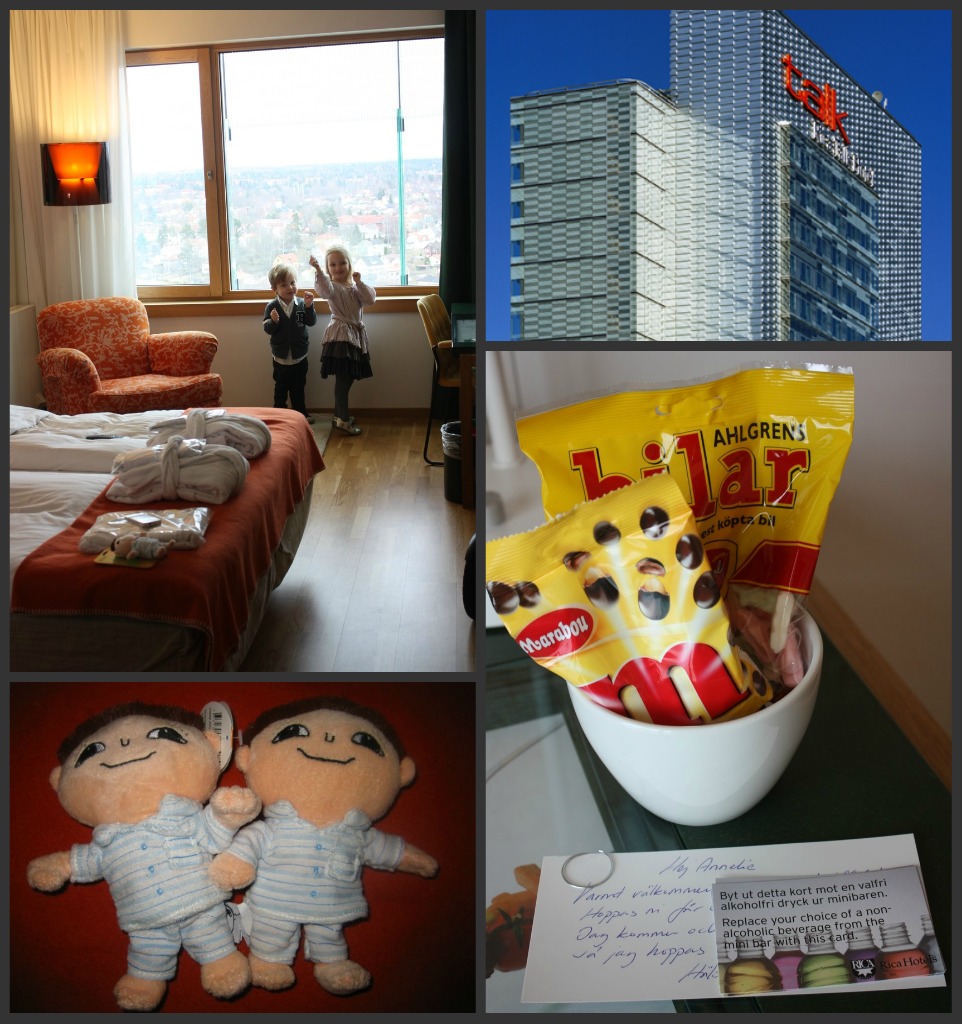 Dagen får nog 5 Alfons av 5 möjliga av barnen, jag har också haft en trevlig dag men det tar på krafterna att ha ensamt ansvar och uppsikt över två livfulla barn bland massor av andra barn och i en enorm lokal där förstås barnen vill vara på olika avdelningar och leka. Men det var mitt eget val att göra detta och jag gläds verkligen med barnen och gjorde detta för deras skull!!! Nu ska en väldigt trött mamma krypa ner i den stora hotellsängen tillsammans med de underbara barnen. God Natt, imorgon kommer recension av sängen och hotellfrukosten 🙂