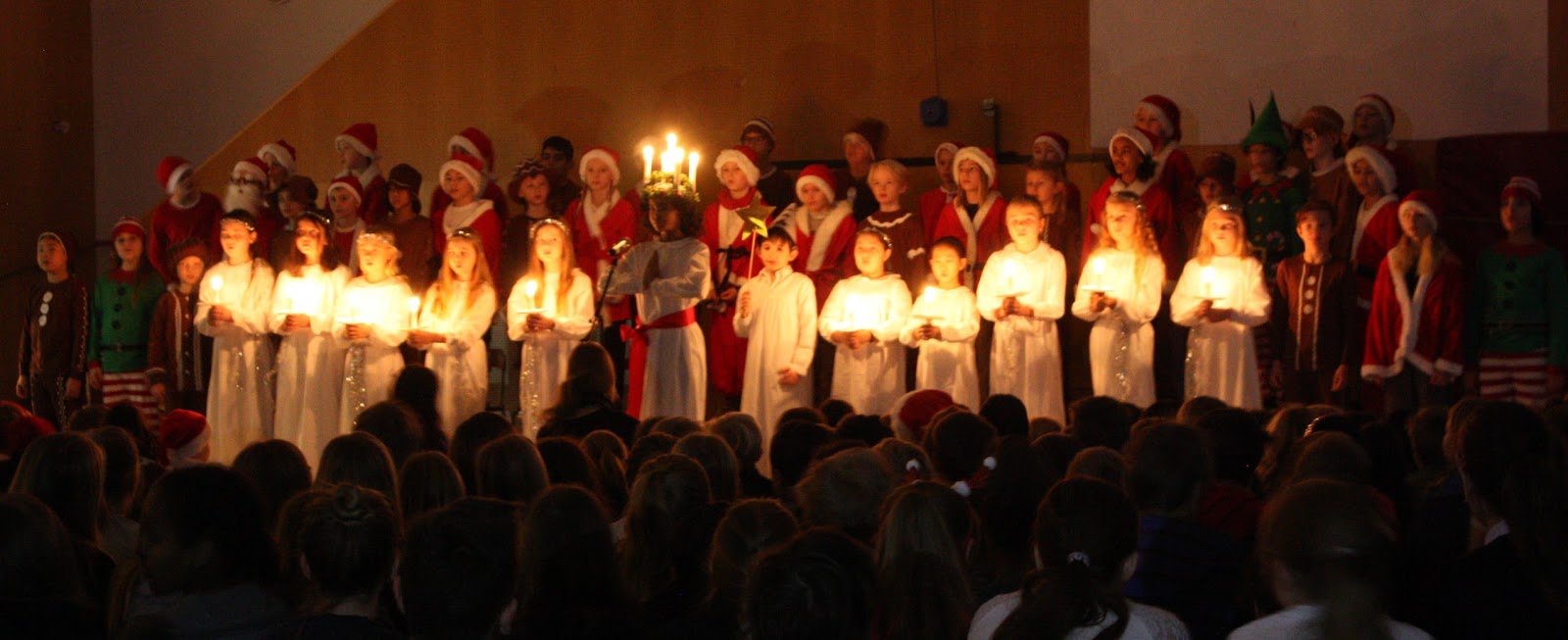 Luciamorgon och jag och Smilla väckte killarna med luciasång och levande ljus vid deras sängar och sen gick vi alla och satte oss i soffan och kollade på SVT:s luciamorgon för att få ännu mer luciastämning. Klockan 8.30 var det dags för luciauppträdande i skolan och i år var det Smillas klass som höll i det så vi föräldrar var inbjudna för att titta tillsammans med skolans elever så det var mysigt.