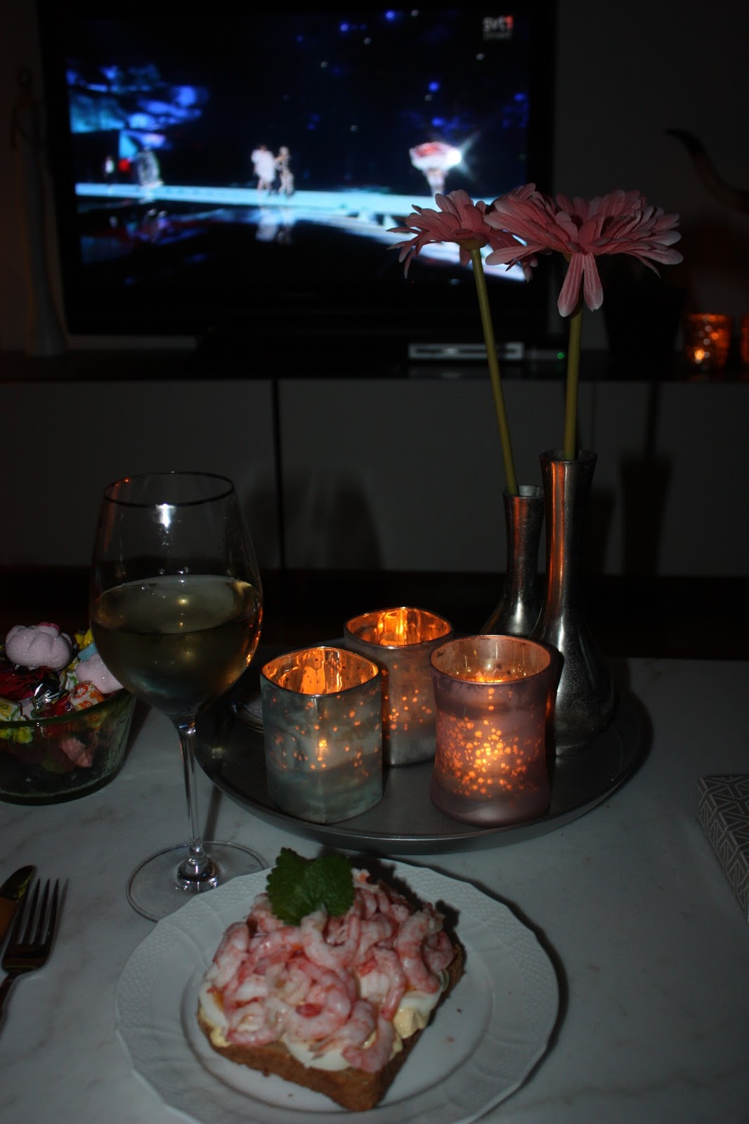 På kvällen var det ju Eurovisionen och Jocke kom hem lagom tills det började så vi drack lite vin och åt räckmackor. Men sen tog det inte så länge innan han somnade på soffan och jag fick kolla klart själv. Men det var väntat och jag är van så det gjorde inte så mycket 😉