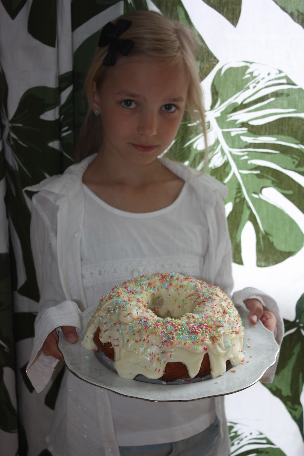 I söndags ville Smilla baka och hon gjorde en supergod sockerkaka med frosting och karamellströssel och sen ringde vi efter några vänner och bjöd dem på fika. Vi satt och pratade länge innan det var dags att bryta upp för fotbollsträning och söndagsbad.
