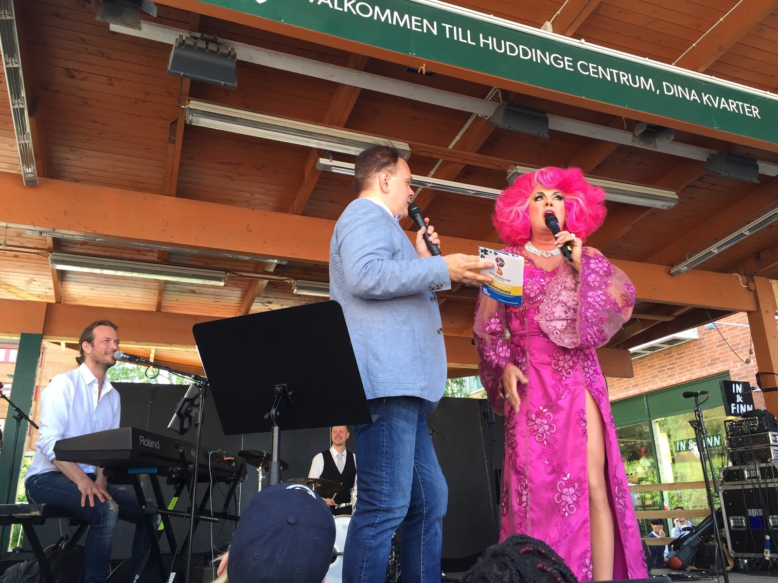 Som jag skrev tidigare så var Jocke för tredje året på rad ansvarig över Huddinge Centrums Nationaldagsfirande. Det enda önskemål kommunen hade var att Babsan skulle vara gästartist och att allsång skulle stå på schemat. Babsan är en härlig människa som verkligen bjuder på sig själv och det var väldigt kul att träffa hen igen!