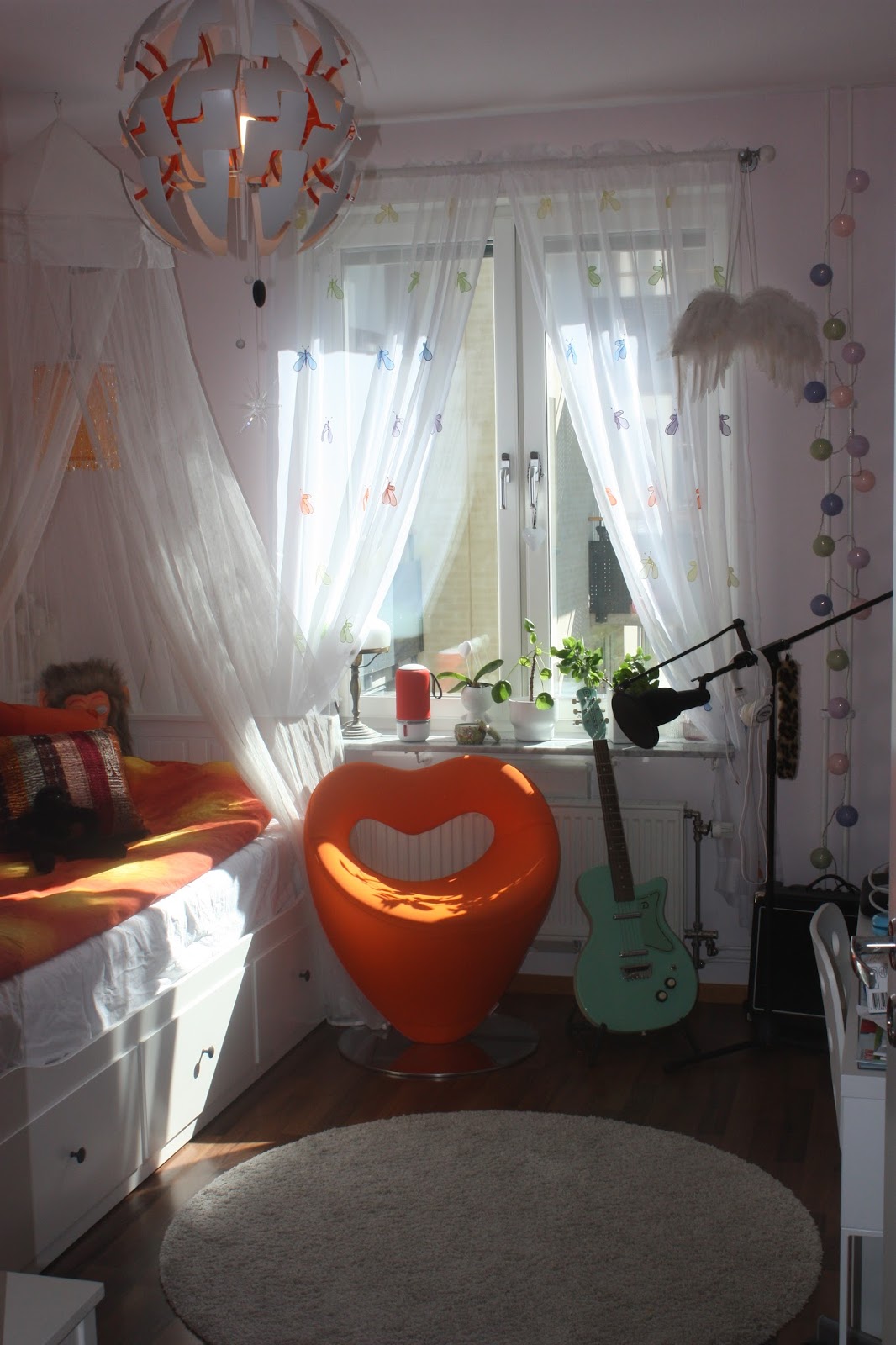 Smilla har alltid varit så ”prinsessig” av sig, älskat färgen rosa och vackra klänningar. Men något har hänt under sommaren, hon har fyllt 9 år och började nu 3:an och helt plötsligt så vill hon inte ha klänningar utan det ska vara korta shorts och tuffa tröjor. Hon vägrar att ha rosa i sitt rum så det är bara att försöka byta ut de rosa produkterna mot orange istället 🙂
