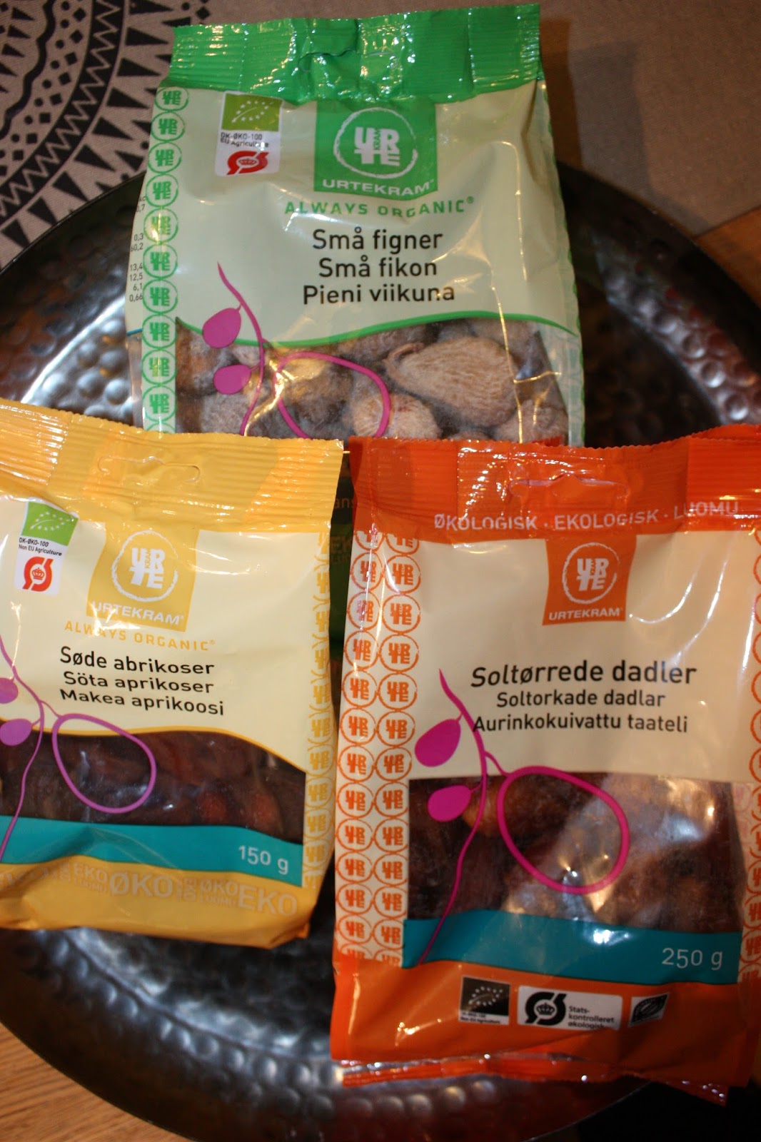 Hela Urtekrams ekologiska serie med torkad frukt säljs i dagligvaruhandeln från och med nu i februari!