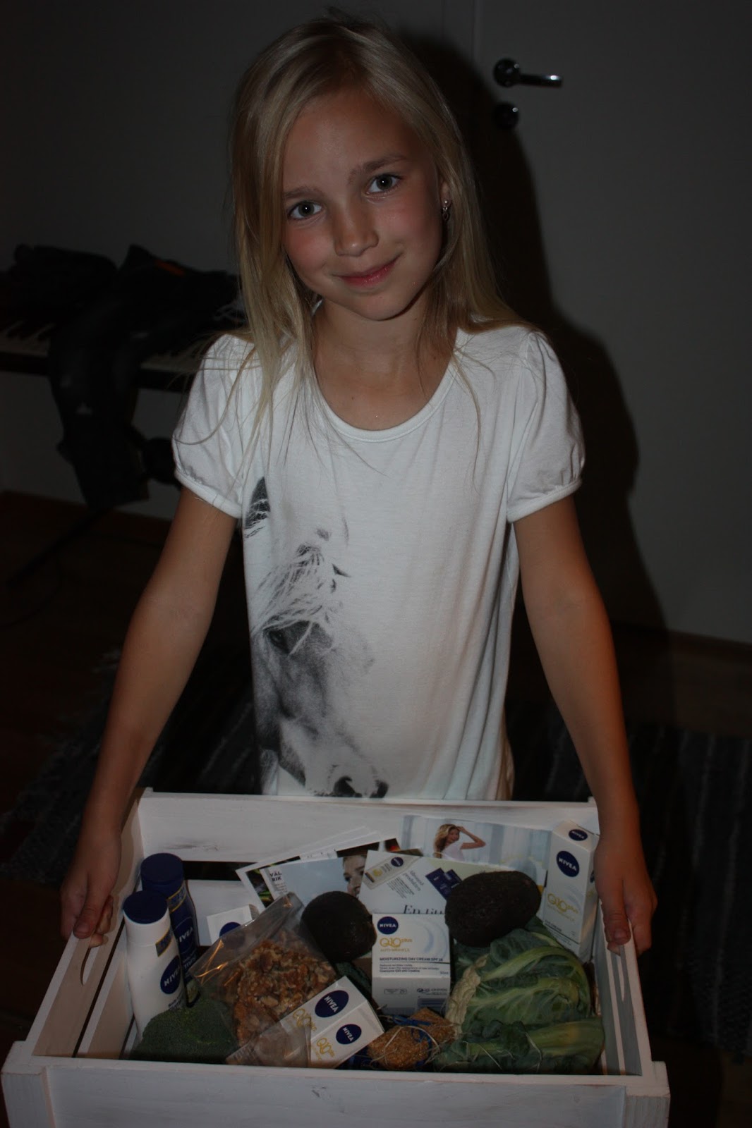 -Mamma, du har fått ett sånt där bud igen… barnen är rätt vana att jag får bud och tar vant emot vid dörren. Den här gången var det ett bud från Nivea. De tycker säkert att jag börjat bli rynkig för det var massa krämer och mat med Q10 😉