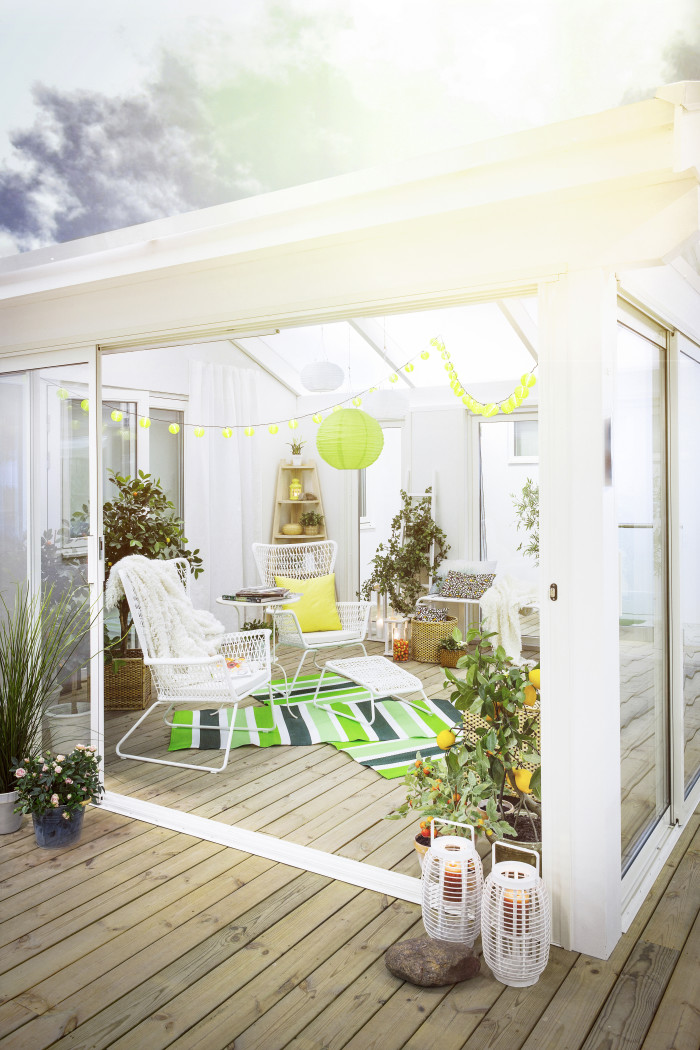 inglasad veranda som binder ihop trädgården med hemmet. En rofylld plats
