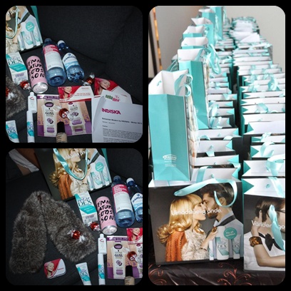 Självklart fick vi även en lyxig goodiebag som innehöll bland annat en härlig pälskrage från Indiska, tamponger från Tampons for free produkter från retarDEX, energidryck från Femme och massa annat smått och gott.