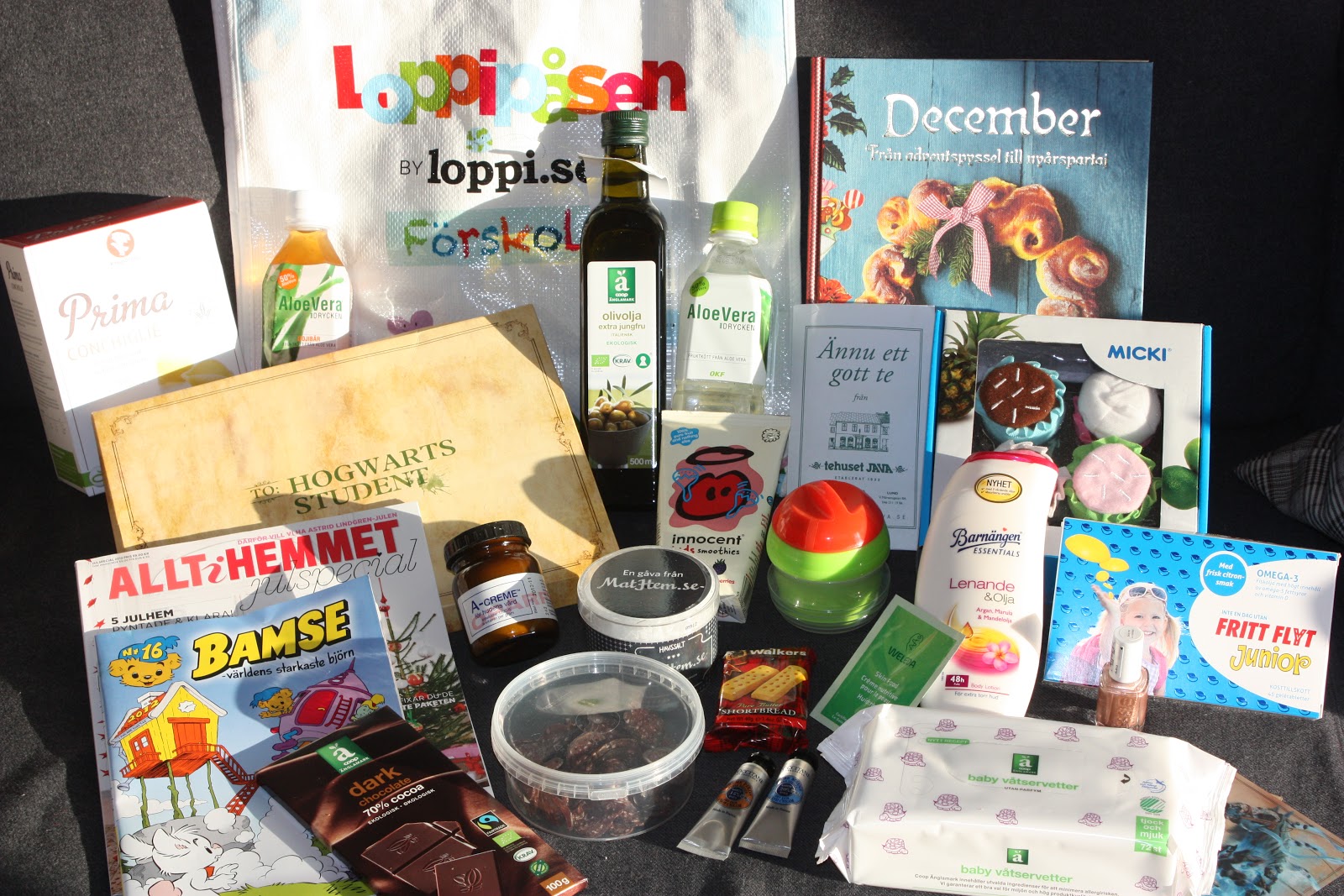 Olivolja, choklad & våtservetter från Änglamark, underbara Cup cakes-bakelser i tyg från Micki, A-creme – en universalkräm som funnits i över 60 år och är perfekt till det mesta, Nagellack och hudkrämer från Parelle Cosmetics + rabattcheck, Book of Spells – ett nytt Playstationspel i Harry Potter-stil, Omega-3 tillskott för barn från Vesterålens naturprodukter, Tidningen Allt i hemmet-julspecial, havssalt från Mathem,